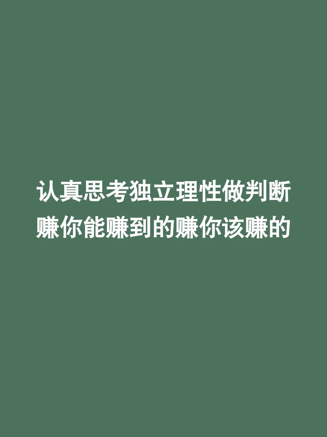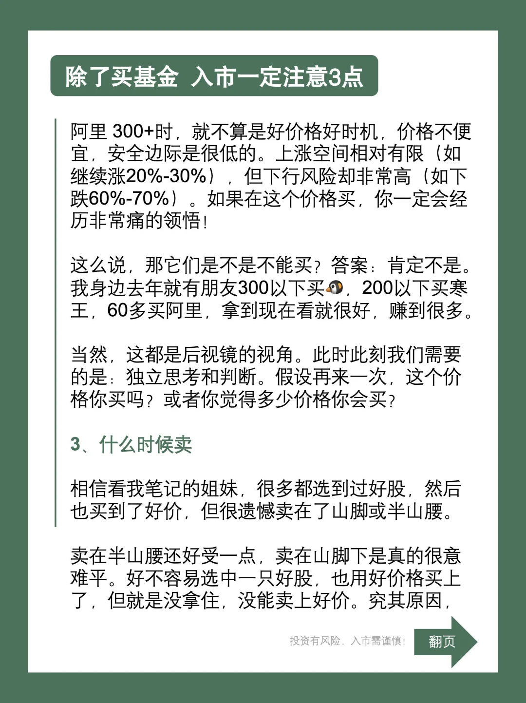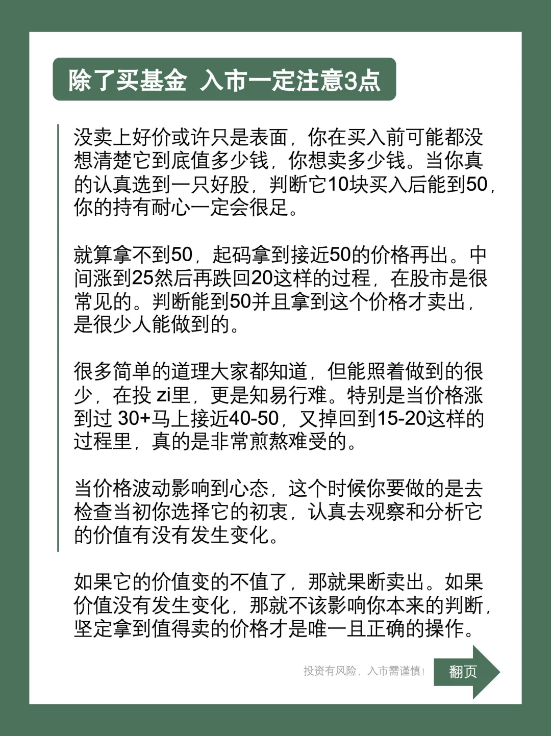 相信看我笔记的姐妹,很多都选到过好股,也买到了好价,但遗憾卖在了山脚或半山腰。卖在半山腰还好受一点,卖在山脚下是真的意难平。而没卖上好价或许只是表面,可能你买入前就没想清楚它到底值多少钱,你想卖多少钱。当你认真选到一只好股,判断它10块买入后能到50,持有耐心一定足很多。拿不到50,起码能拿到接近50的价格出。判断能到50并且拿到这个价格才卖出,是很少人能做到的,知易行难。价格波动影响到心态时,你要做的是去检查选择它的初衷,认真分析它的价值有没有发生变化。如果它的价值变的不值了,那就果断卖出。如果价值没有发生变化,那就不该影响你本来的判断,坚定拿到值得卖的价格才是唯一且正确的操作。