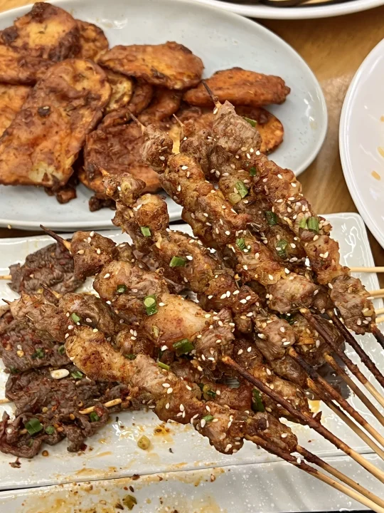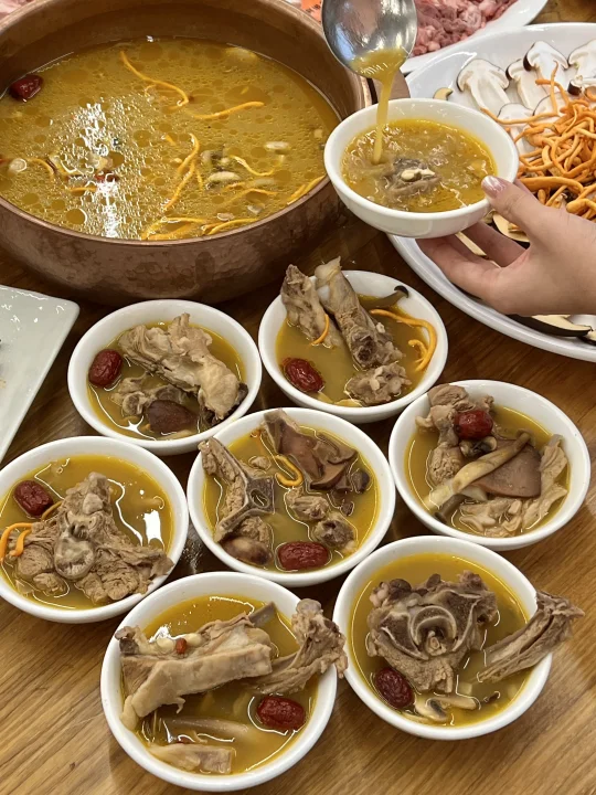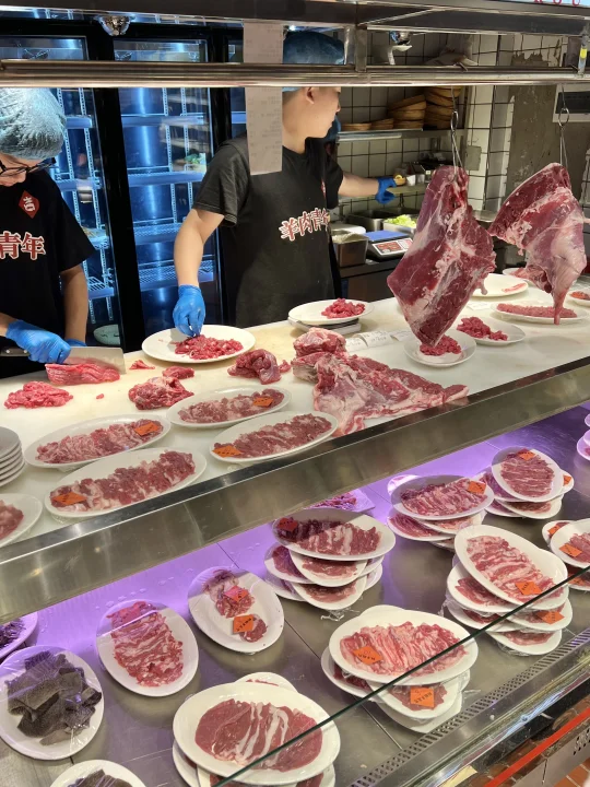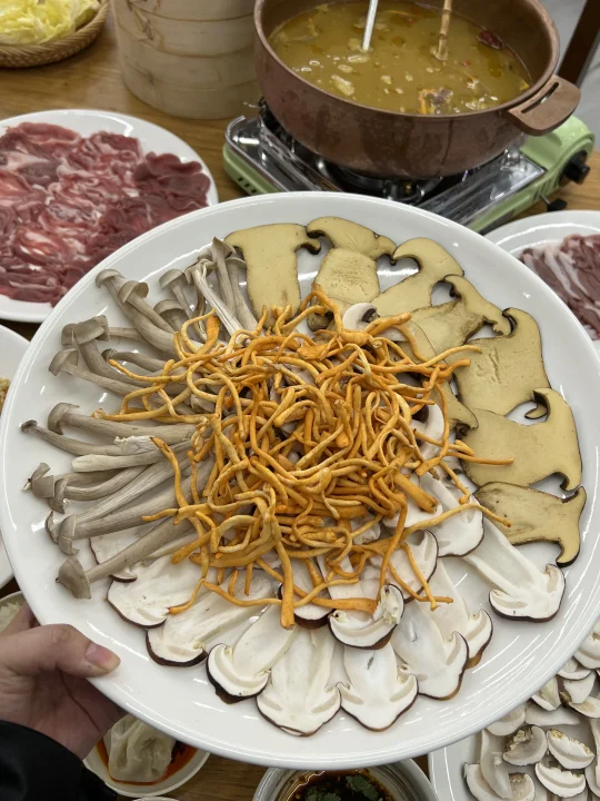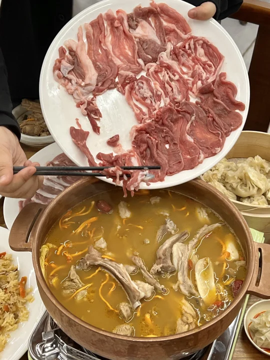 手工现包的羊肉纸皮烧麦吼吼吃啊!!馅儿暴多,趁热蘸上秘制酱料!!太香啦!! 定位到阿吉放羊·鲜羊肉铺就能吃到咯!!!烟火气满满的一家小店!!店里的小哥哥小姐姐都好热情 所有羊肉全部都是现点现切,明档看得见! 第一次吃到山野菌汤锅底的羊肉火锅!!hin惊艳!双倍的鲜啊啊啊啊!!可以和我一样先喝一碗汤再涮菜哦~菌菇拼盘、鲜羊肉、羊排就没有不好吃的,人多的话建议可以加份手抓饭和羊肉串!!满足!!!长沙羊肉火锅推荐直奔这里不会错!!