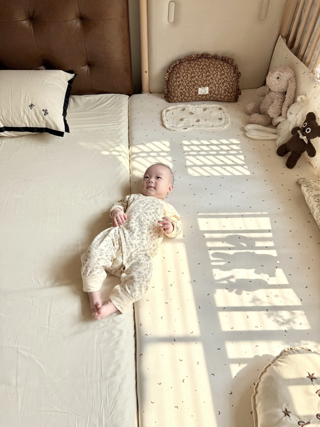 两个月晚上就能睡整觉,睡醒不管几点都会对妈妈笑