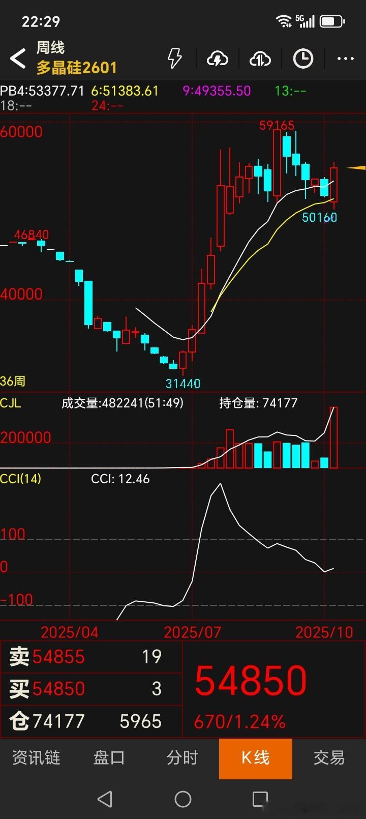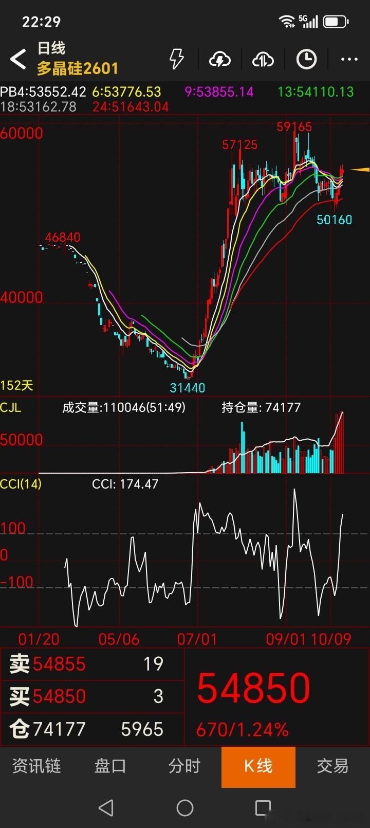 多晶硅你们怎么看?我盯了两个月了,目前还准备再继续看看!有时候在场外比进场更开心!如果有机会我就进场空2605合约。或者我就看着,一年内的合约我基本不会跟进多单!大家可以说说!