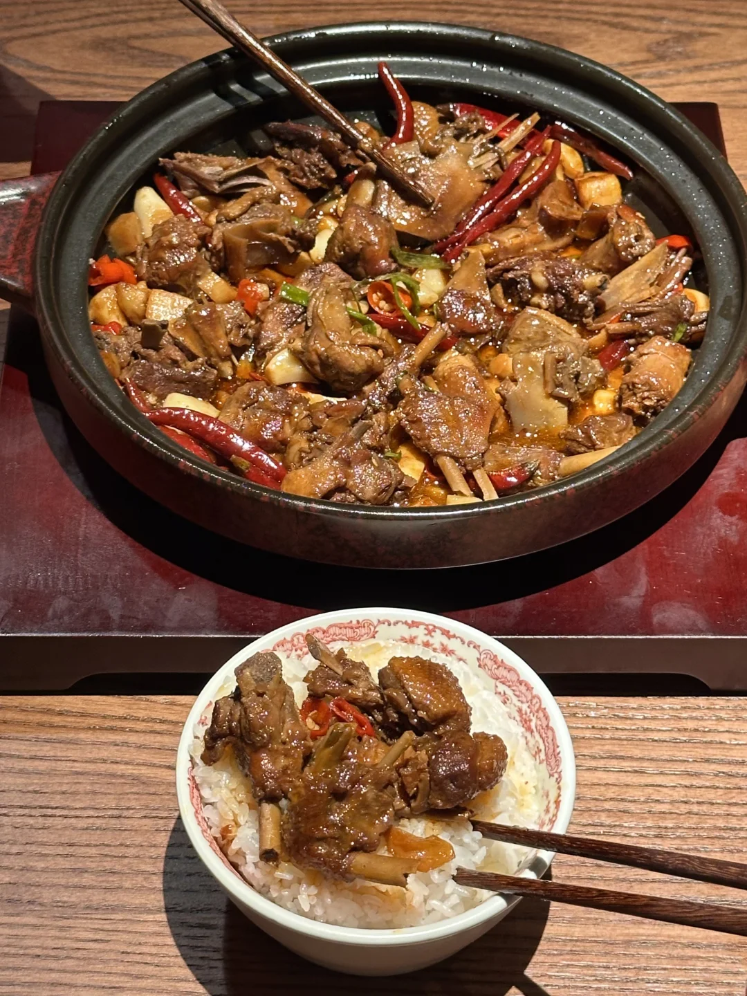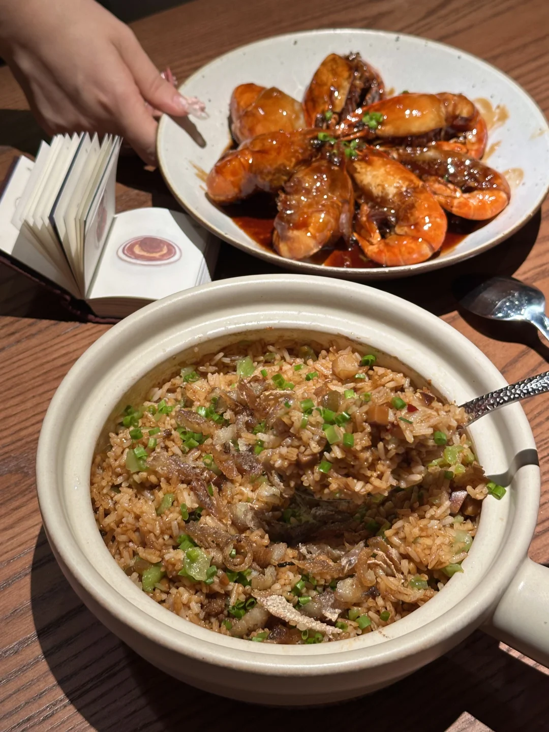 窑锅上桌,带着热气,五花肉、小黄鱼和秘制料汁拌开,鱼香和米香!谁懂