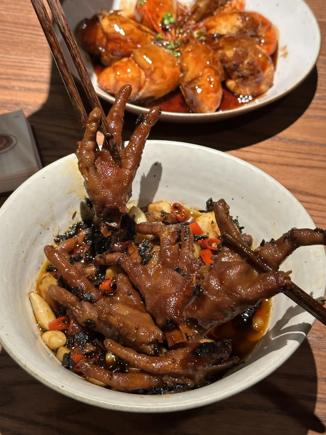 浓油赤酱的外表,梅干菜咸香入味,鸡爪炖的^软烂,满满胶质