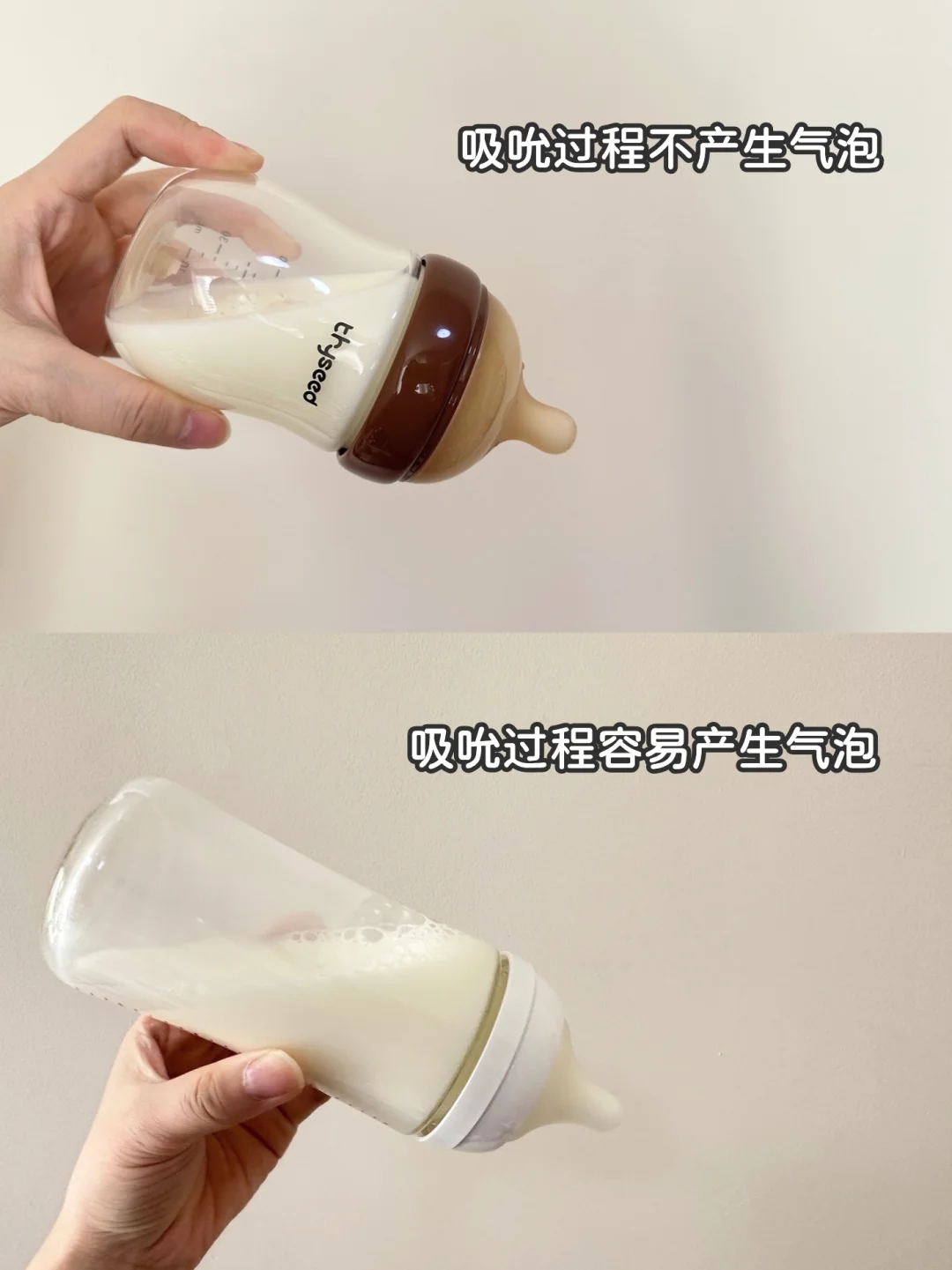 以前刚生大宝时候用的奶瓶,喝奶时总能看到气泡,宝宝喝完老是扭来扭去,半夜胀气哭闹真的费妈