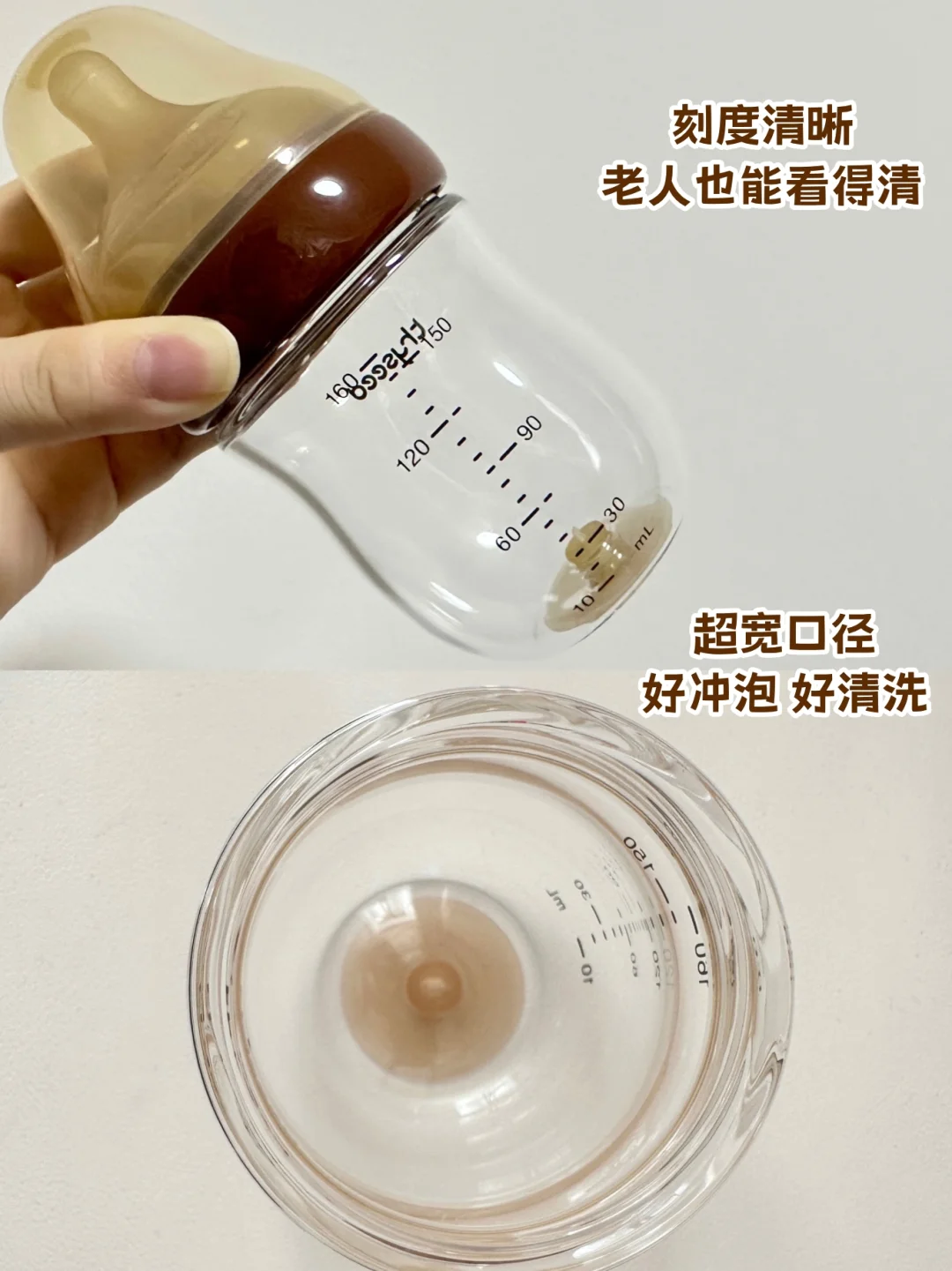 ✅口径也比普通奶瓶的宽,配件也很简单,搭配她们家的清洗剂跟奶瓶刷冲一冲就干净了,耐高温的材质随便丢消毒柜蒸煮也没问题👌🏻