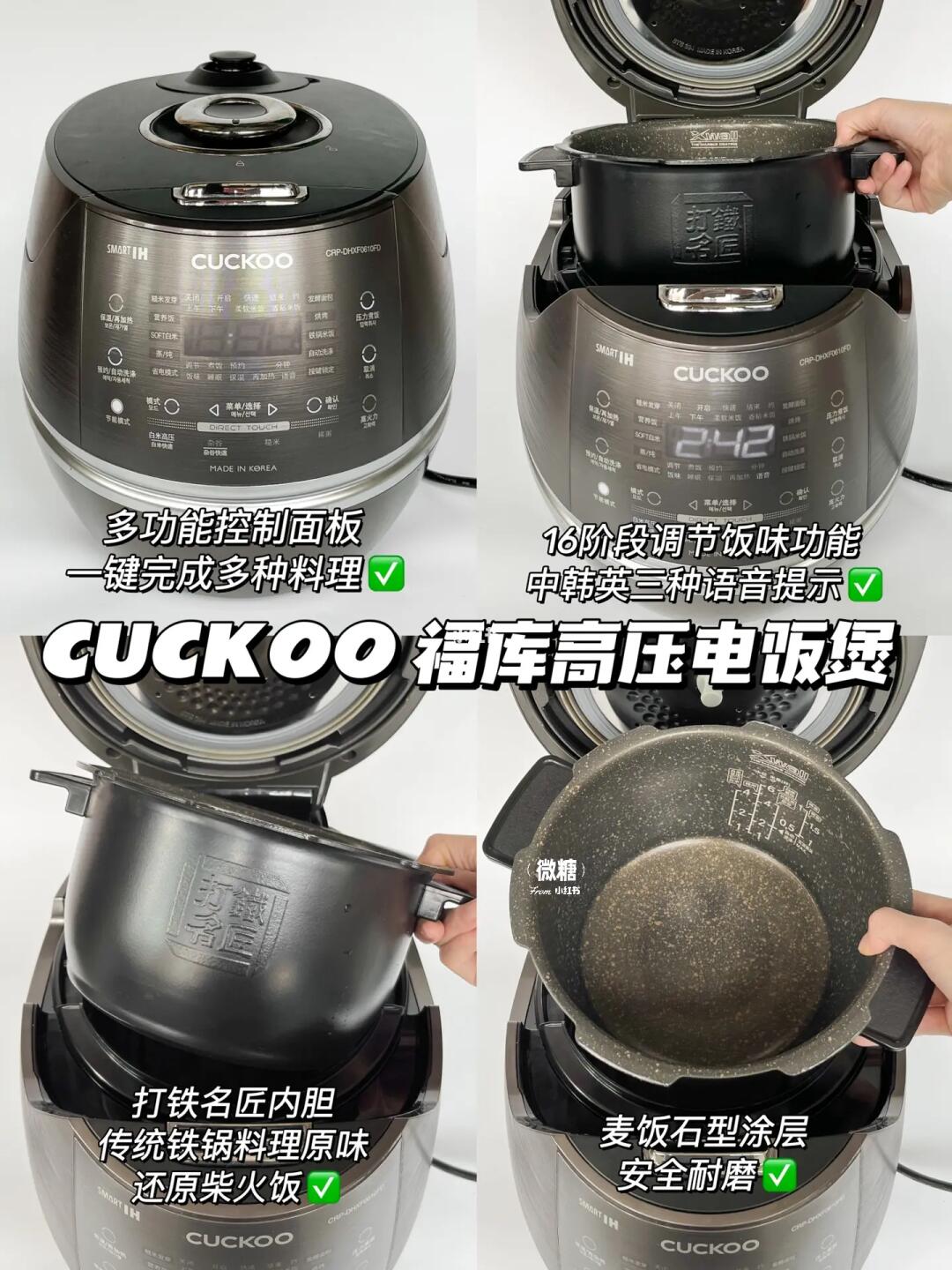 🥣做焖饭用到的是福库高压电饭煲!采用打铁名匠内胆,传统铁锅料理原味,还原柴火饭👍🏻 高火力,煮出来的米饭更加晶莹剔透,香软可口😋 约13小时智能预约功能,特别方便省时😌 中韩英三种语音提示,操作简单明了✅