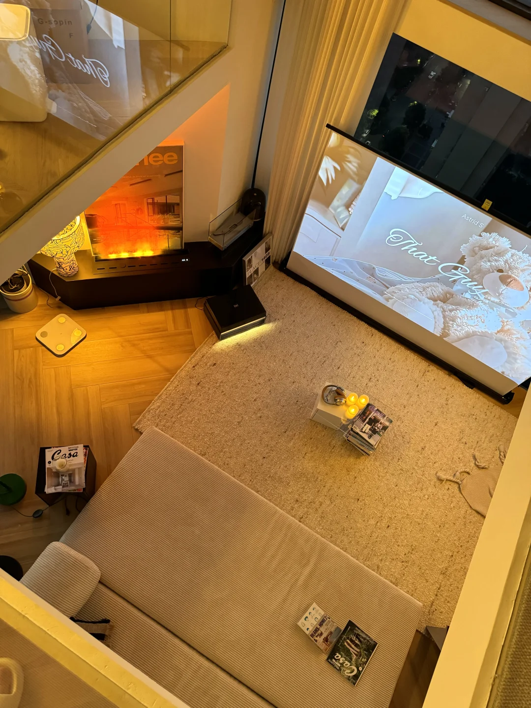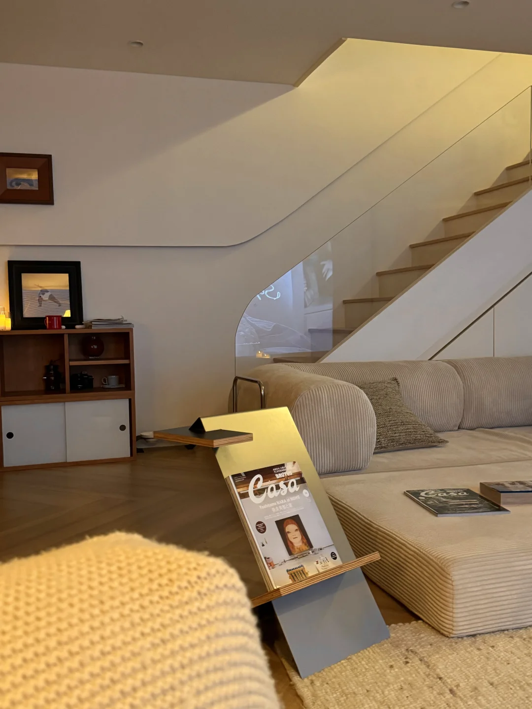 太喜欢这样的客厅氛围啦! 原本客厅真不大。一楼只有40个平 索性一面墙都不要!做一个全开放的空间 这样再小的房子也能看起来很大 房子虽小,需要俱全 ▪️楼下就是客厅🛋️,厨房🍳 ▪️楼上 卧室🛏️,卫生间🚽,工作台🖊️。 这样的搭配对我来说太适合独居的我啦!