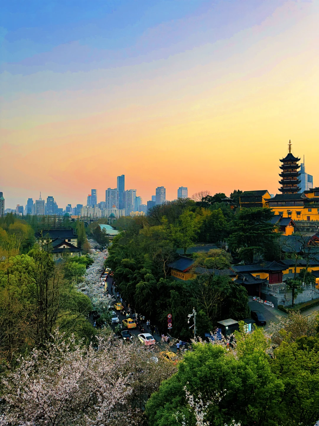 日落➕樱花➕鸡 鸣 寺➕明 城 墙➕紫 峰 大 厦