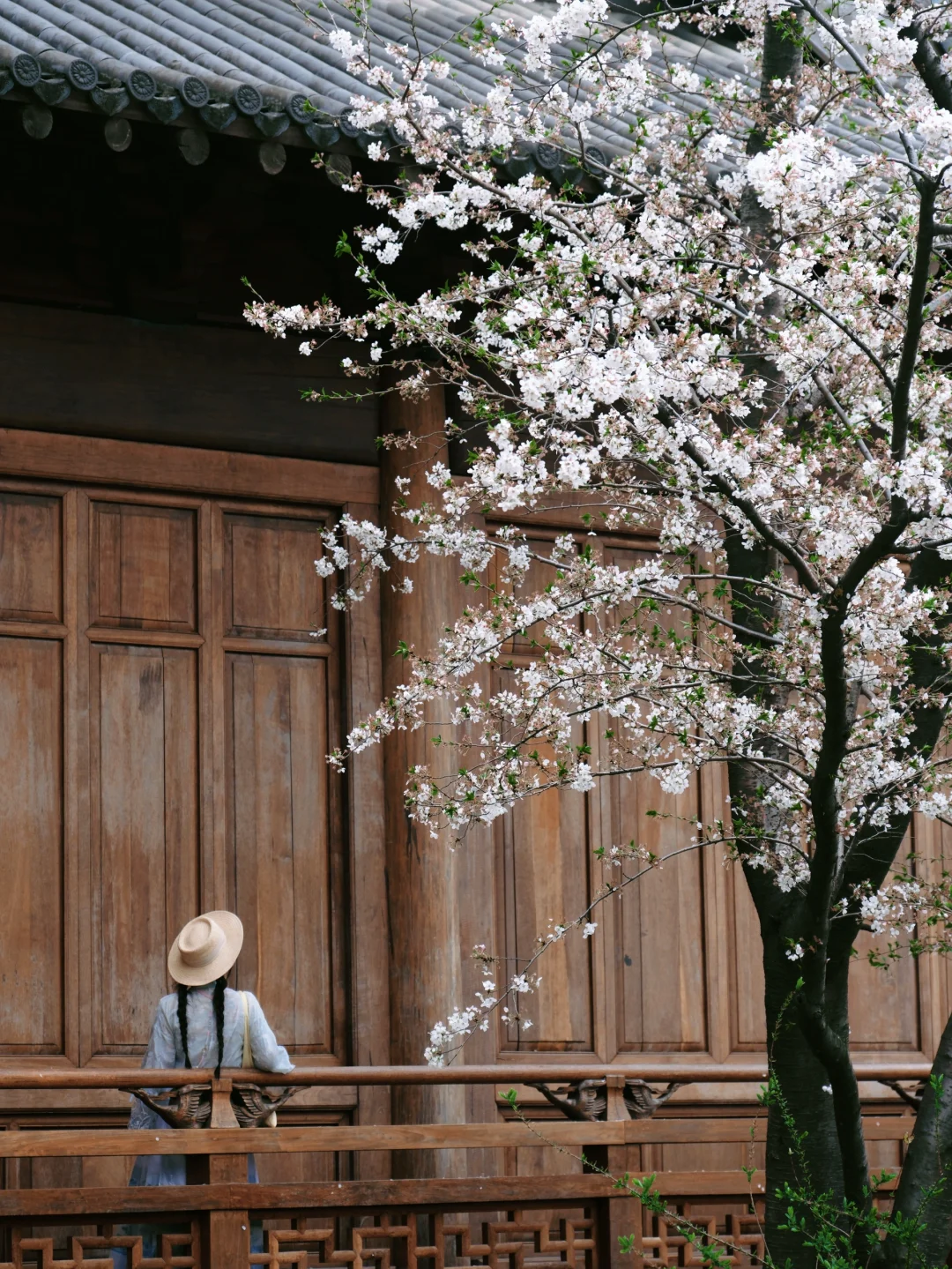 寺前樱花树随风飘落花瓣雨,美到失语🥹