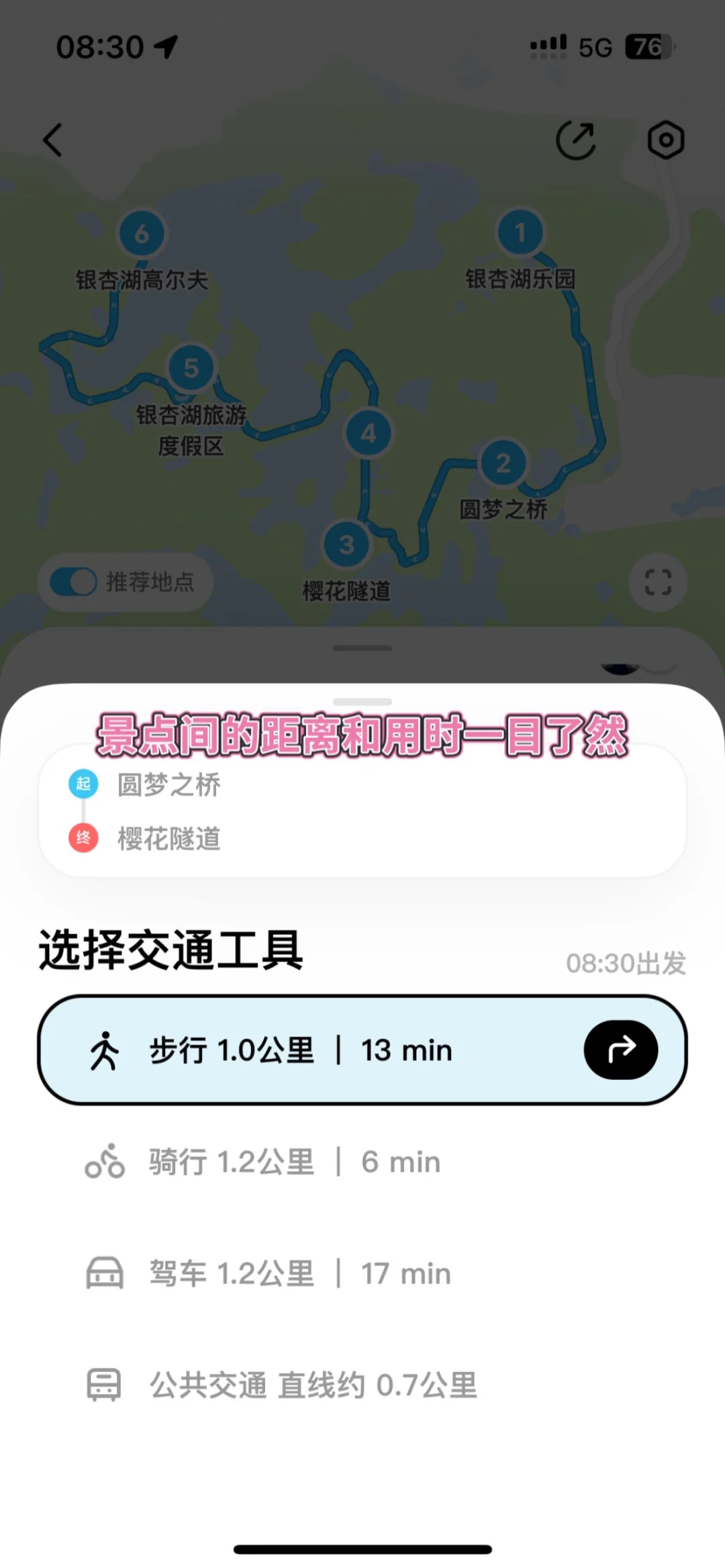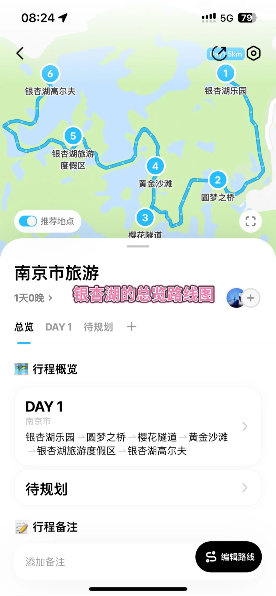 🤳🏻来银杏湖玩,我和好朋友一起用来做攻略,查看地图很方便,一键解析行程,各景点间距离也一目了然,用起来很方便!