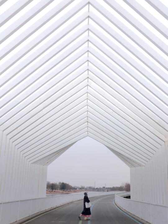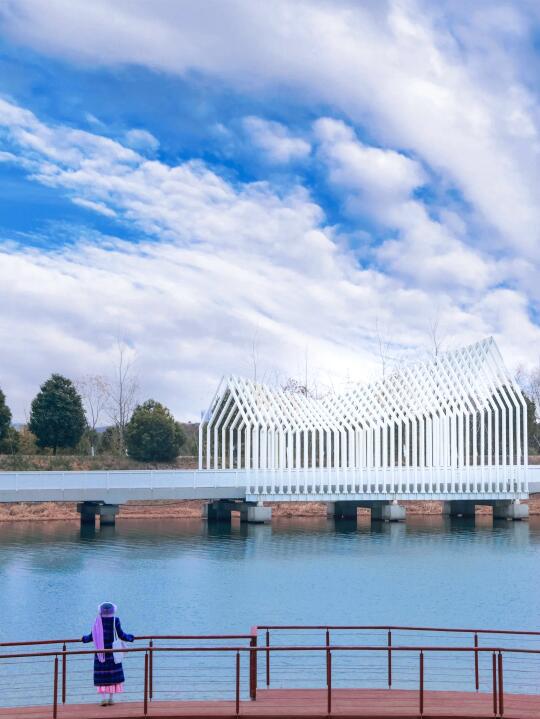 步道西部有一些白色的艺术装置,拍照挺出片,这里自驾/骑行好chill…