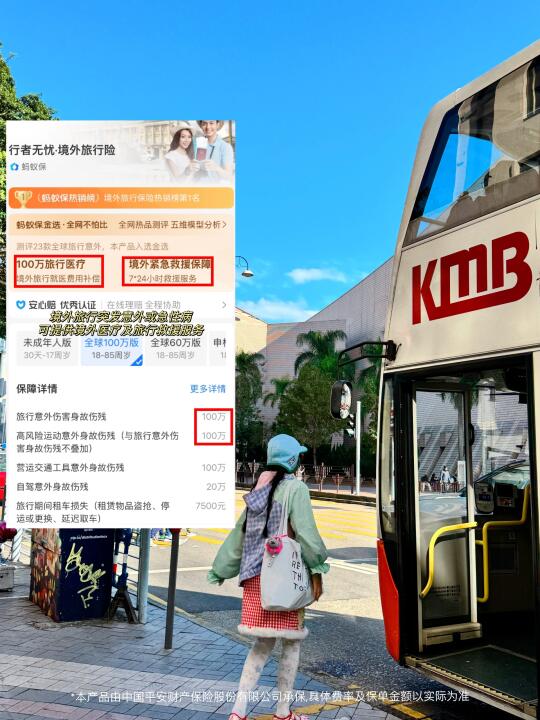 ✔️我买的这款境外保险,如果飞机延误或行程取消也能申请理赔;在户外运动意外受伤也会有医疗补偿,在香港生病也不用担心啦!最高有100w保额哦