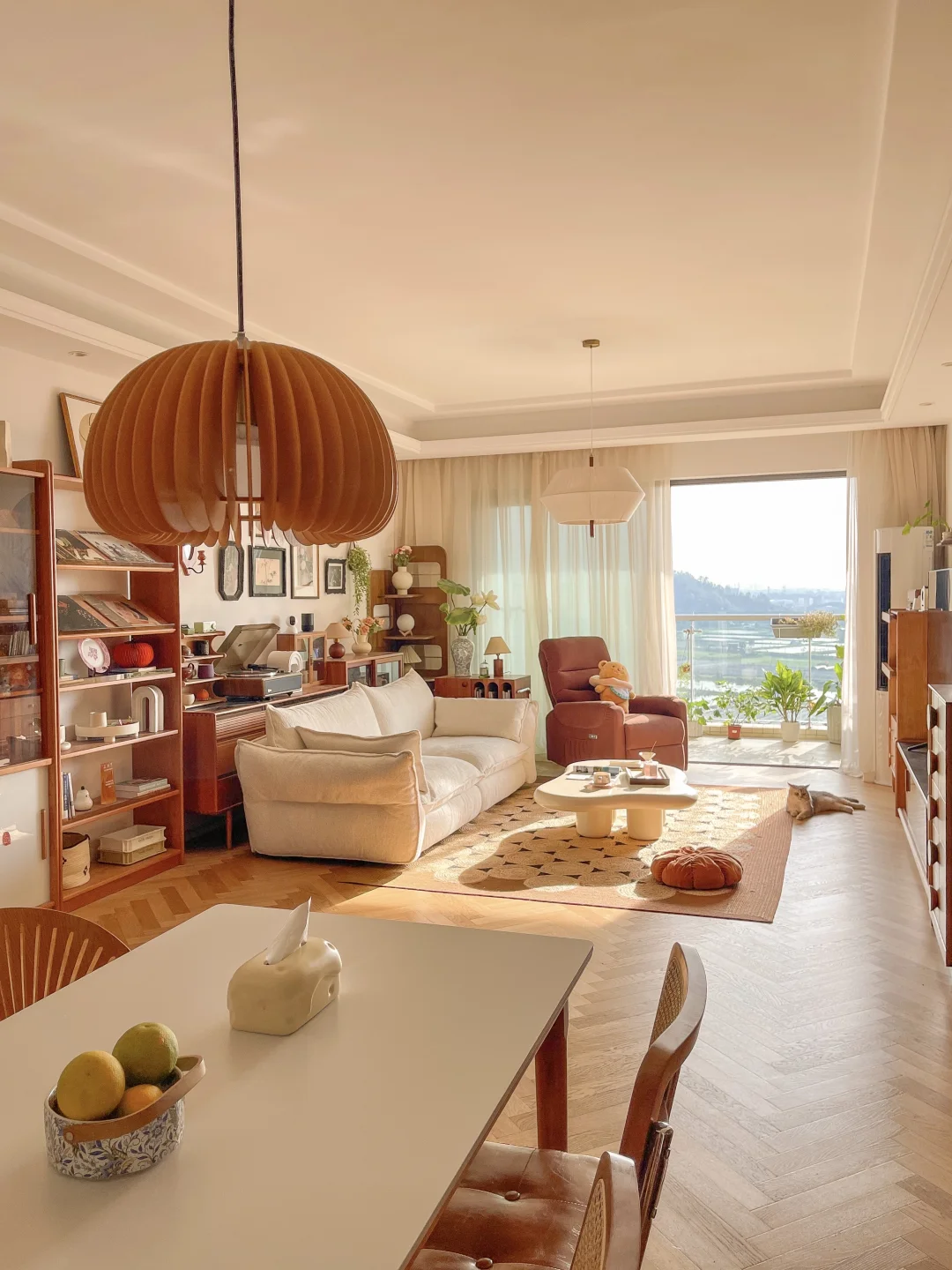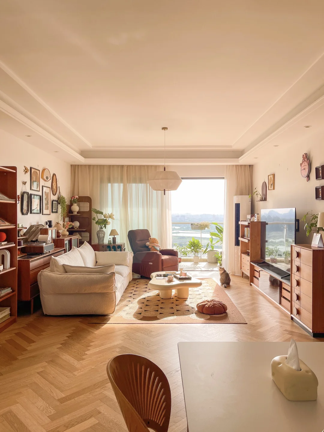 🍃色彩搭配:原木风装修以原木色、米色、白色等自然色系为主,营造出温馨、舒适的氛围。整体色彩较为柔和,避免使用过于鲜艳或强烈的颜色