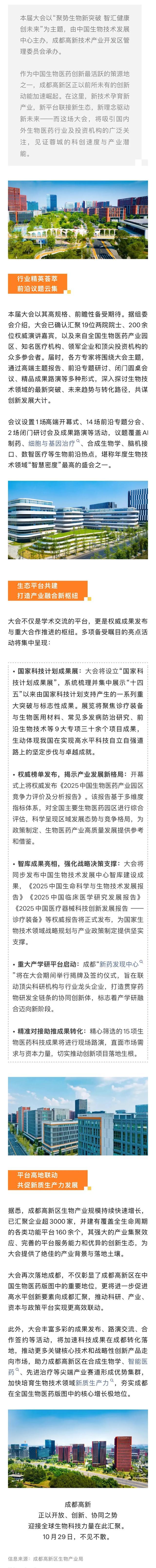 2025中国生物技术创新大会将于10月29日至31日在成都高新区世纪城新国际会展中心举行,这是成都第四次承办这一国家级生物科技盛会。