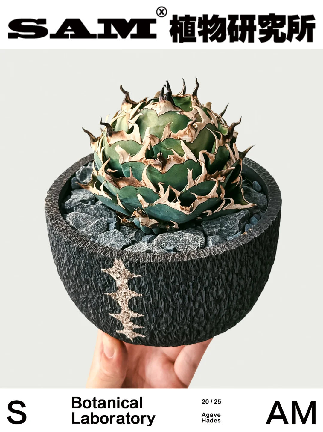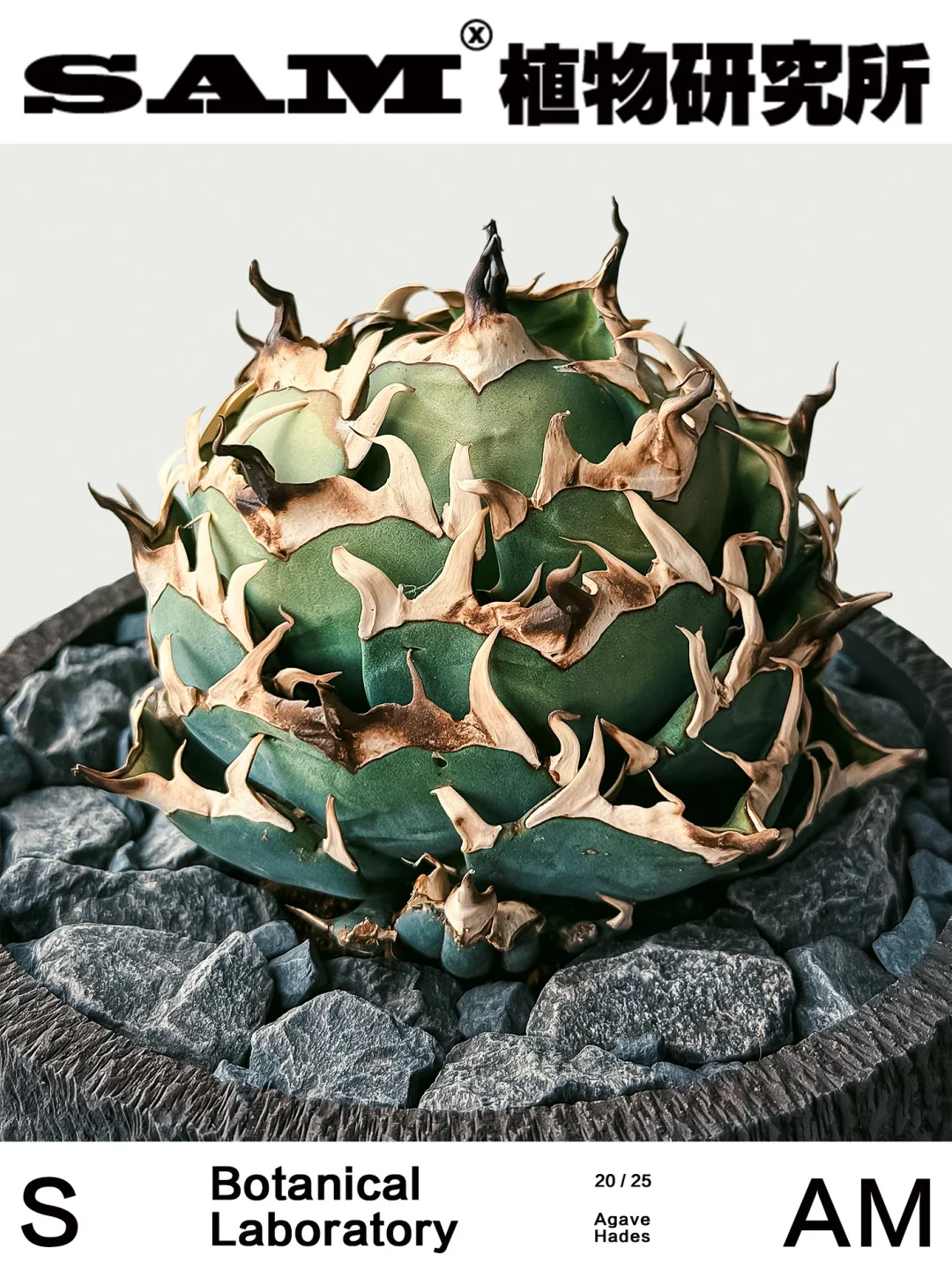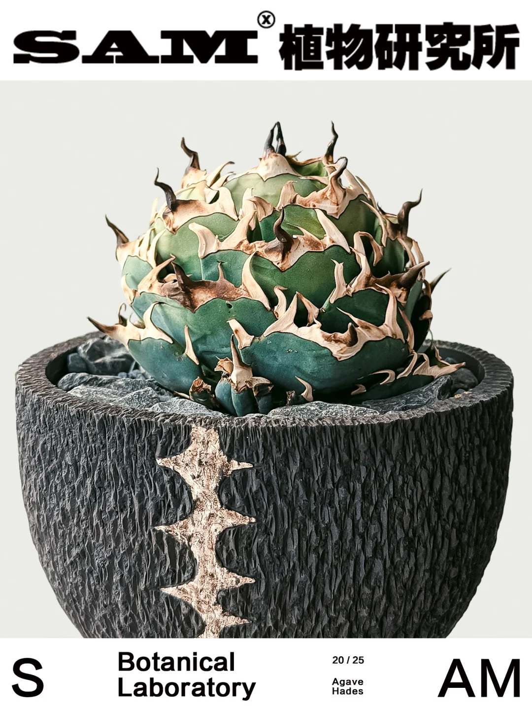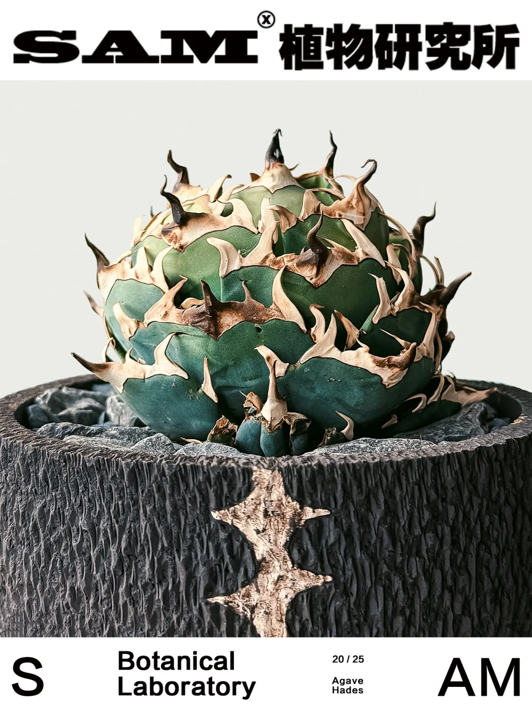 💚Tips:随着赵露思和陈伟霆主演的《许我耀眼》的热播,仁王冠龙舌兰也火出了圈,今天SAM就来分享一款“仁王冠系”龙舌兰中的暗黑王者——黑帝斯龙舌兰,兼具力量感与优雅气质。名字取自古希腊神话“冥王黑帝斯”——冥界的统治者、财富与黑暗之神。其主刺最具标志性,黝黑如铁、略微弯曲,仿佛冥界之矛,散发出深邃光泽。这种冷冽气场,配合白色副刺,仿佛是被冥界之火淬炼过,能感受到几分邪魅气场,弯曲向上的叶片却执着地朝向天空伸展。日光充足时,老叶转为蓝调灰色后,整株更显沉稳厚重,宛若披上黑曜石战甲的武士。与部分厚叶系龙舌兰不同,‘Hades’的叶片较为柔韧且宽大,控养后容易形成包圆、紧实的株型,极具观赏性与收藏价值。除此之外,天生适应能力强也是让它更适配更多家居环境,哪怕灼热阳光和贫瘠土壤也能顽强存活。