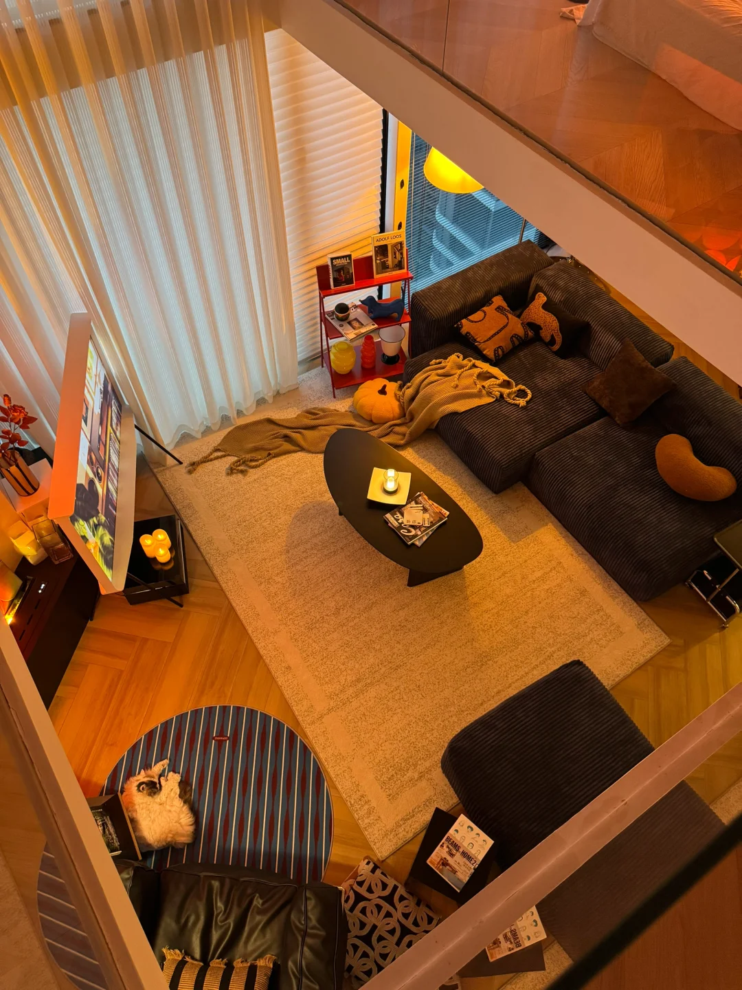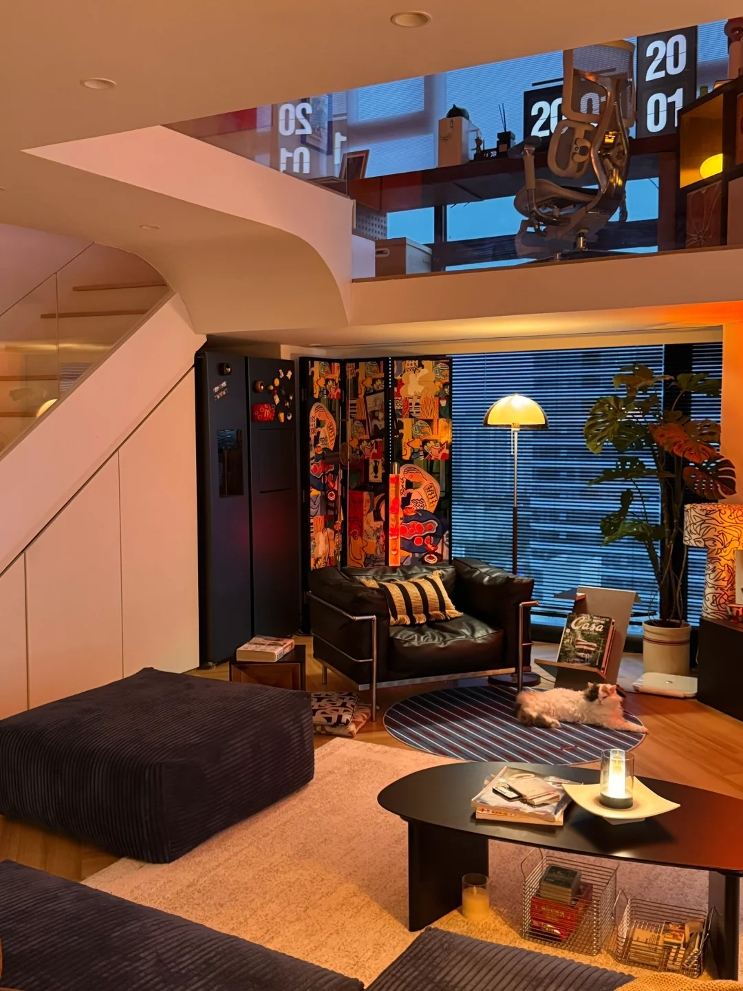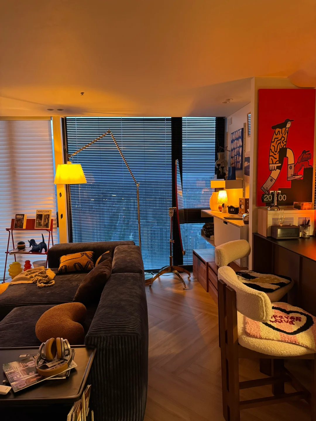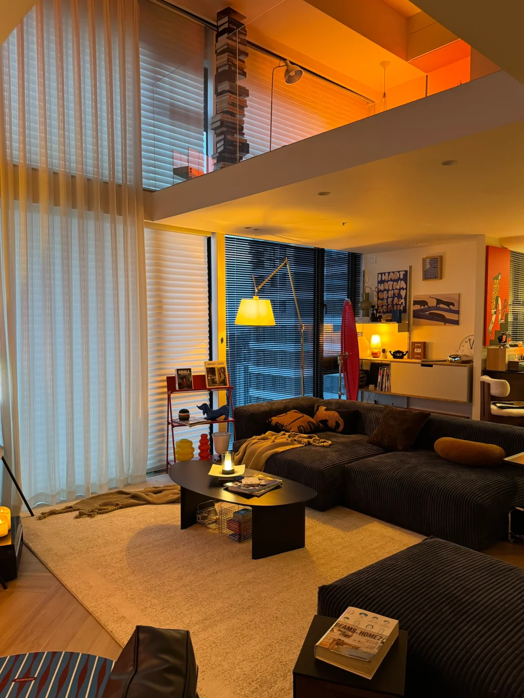 💡无主灯设计:全靠隐藏灯带和落地灯,晚上氛围感直接拉满