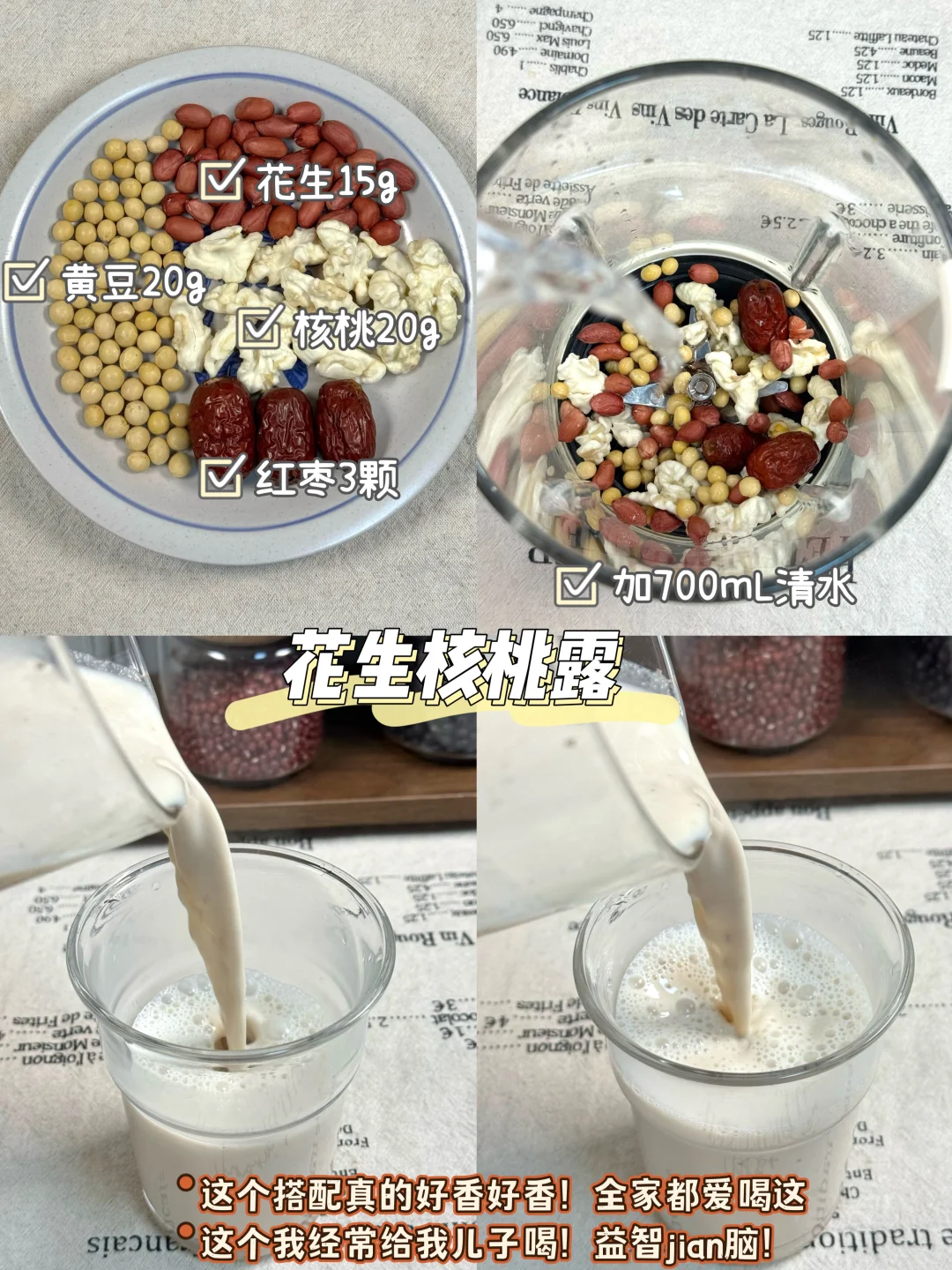 黄豆20g,花生15g,核桃20g,红枣3颗(2人量)