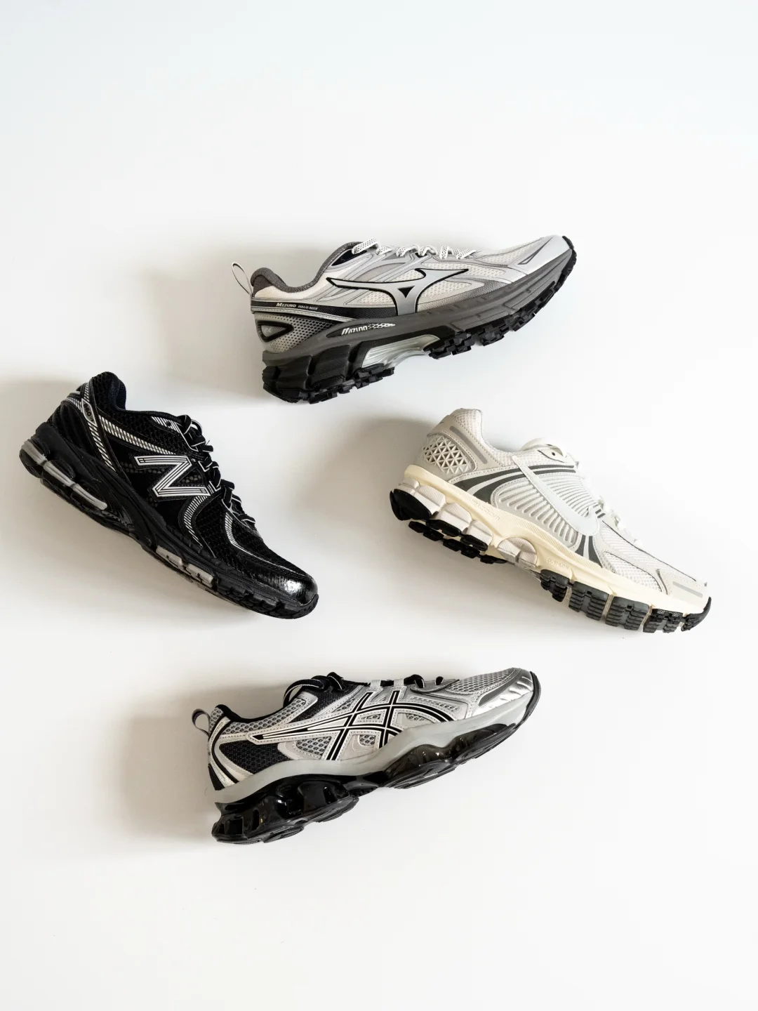 P1:Mizuno-HALO MIX TL - P2: New Balance ML860XC - P3: NIKE VOMERO 5 HF0731 - P4: ASICS-GEL-QUANTUM KINETIC