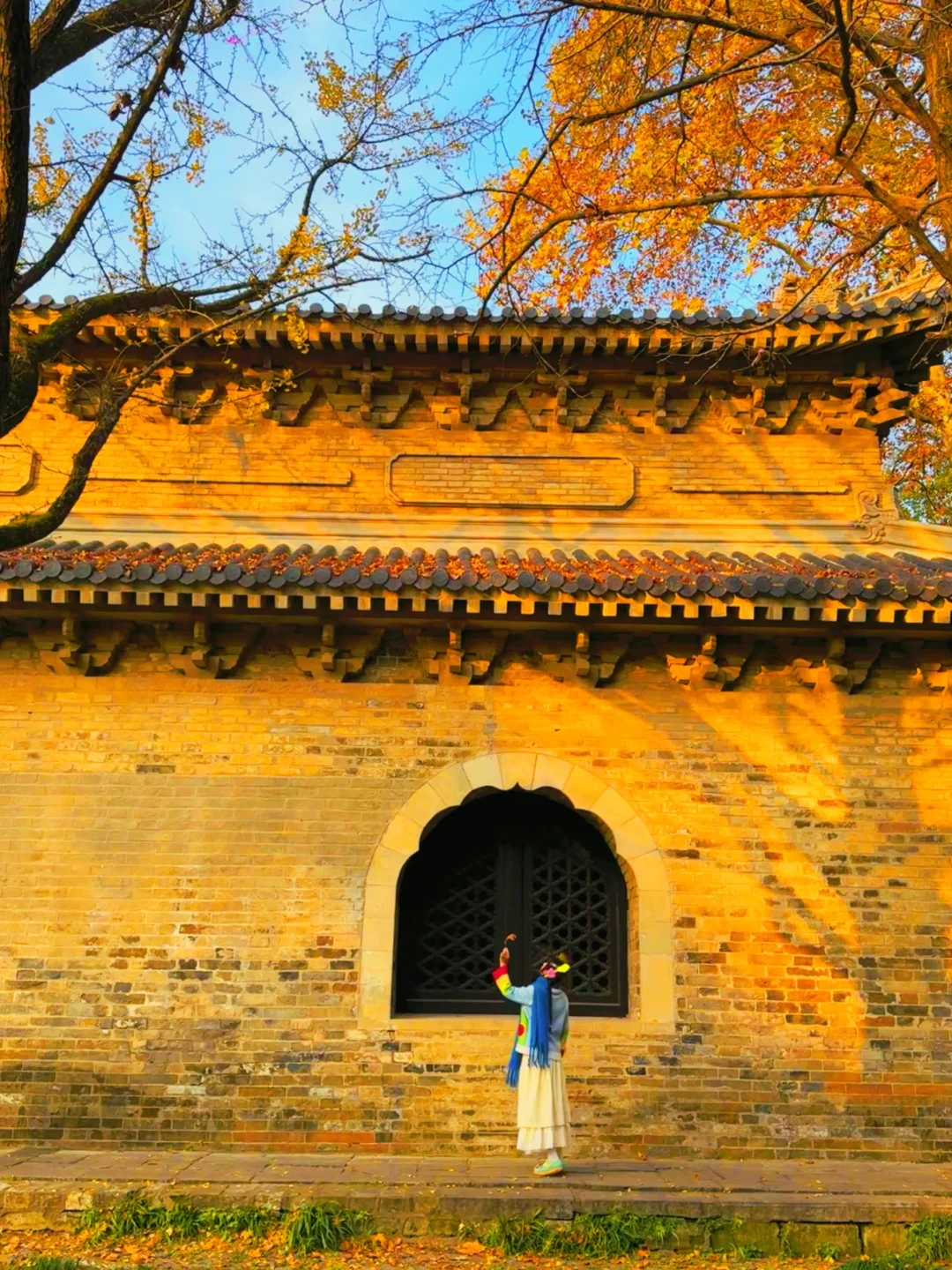 南京灵谷寺的银杏已到坠佳观赏期啦