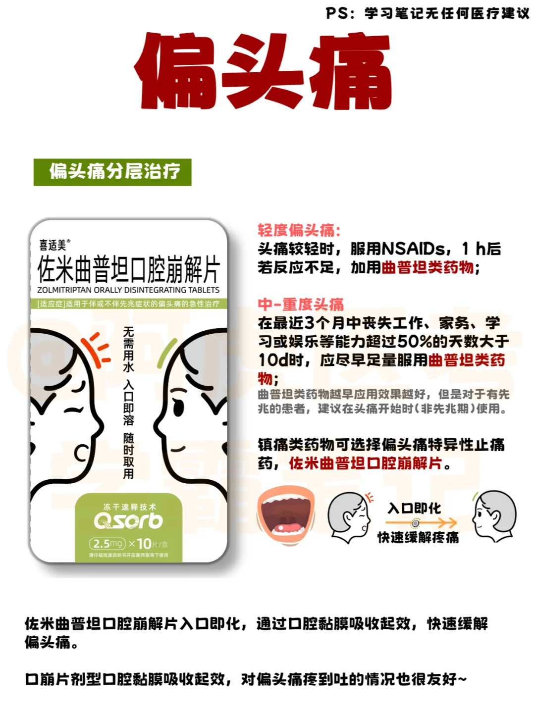 [一R]偏头痛的主要类型 [二R]如何治疗偏头痛 阿虎医考 偏头痛 医学生笔记 佐米曲普坦 佐米口崩片