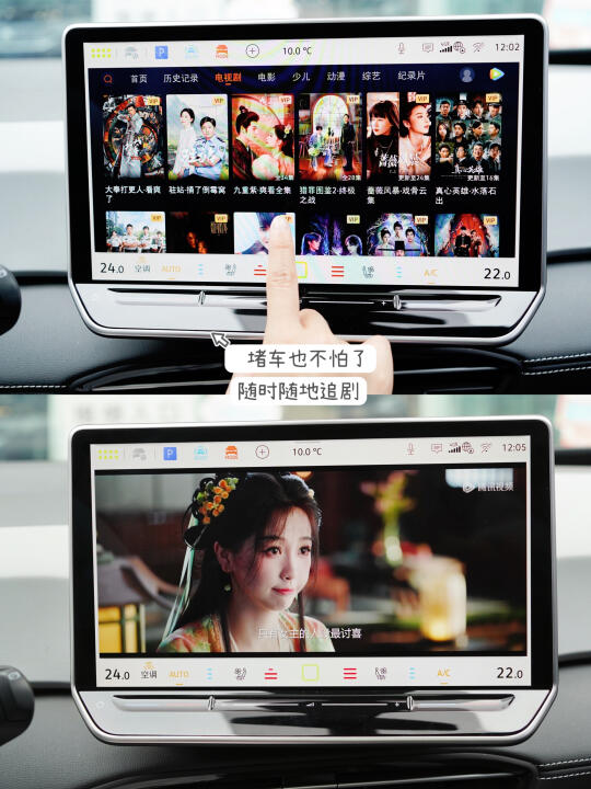 车机系统🎮:升级到12.9寸触控液晶屏,100多种的车载应用功能,随时随地车内躺,宅车看电视、打游戏、K歌 (麦霸在此!还有V Mate智能助手,娱乐性更强!
