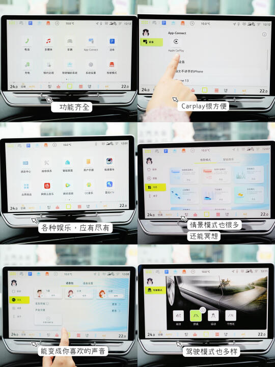 车机系统🎮:海豚触控液晶屏12.8英寸,不支持手机互联,也没有车载KTV,小迪使唤起来还可以,反应迅速。