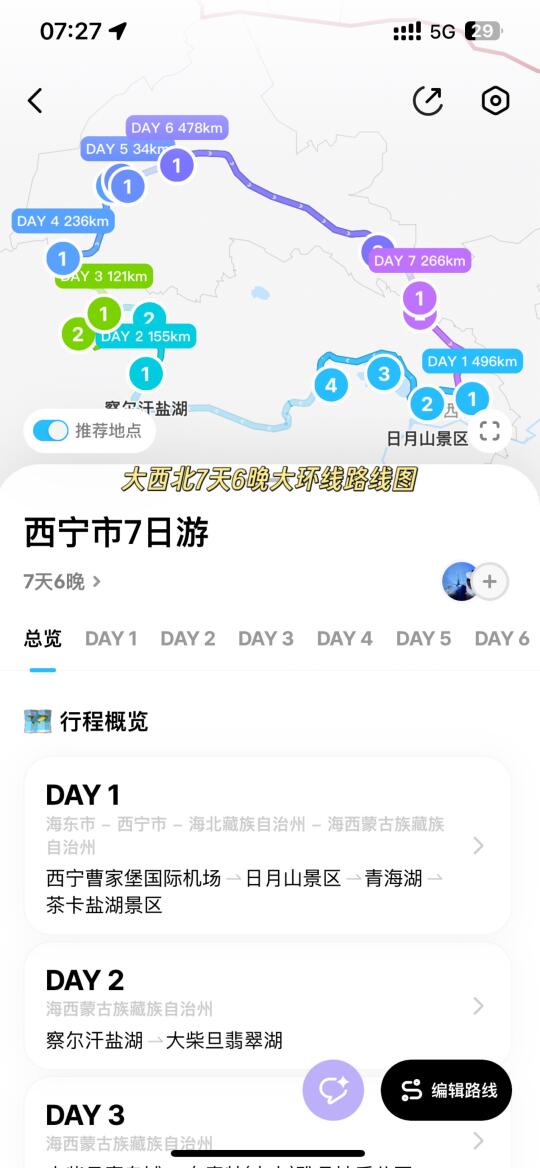 🤳🏻来大西北旅游,我和好朋友有用一起做攻略,查看地图很方便,一键解析行程,各景点间距离时间也一目了然,还能点亮去过的地方,太浪漫啦~
