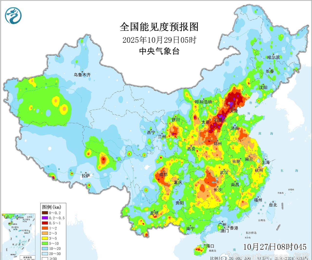 【雾和霾】未来2天,在华北黄淮等地,处于地面高压后侧,可能出现雾或霾。清晨时段湿度大,呈现为雾,白天湿度下降,呈现为霾。其实,更合理的说法,应该就是雾霾混杂。30日,受冷空气影响,上述地区雾和霾,将自北向南逐渐减弱或消散。