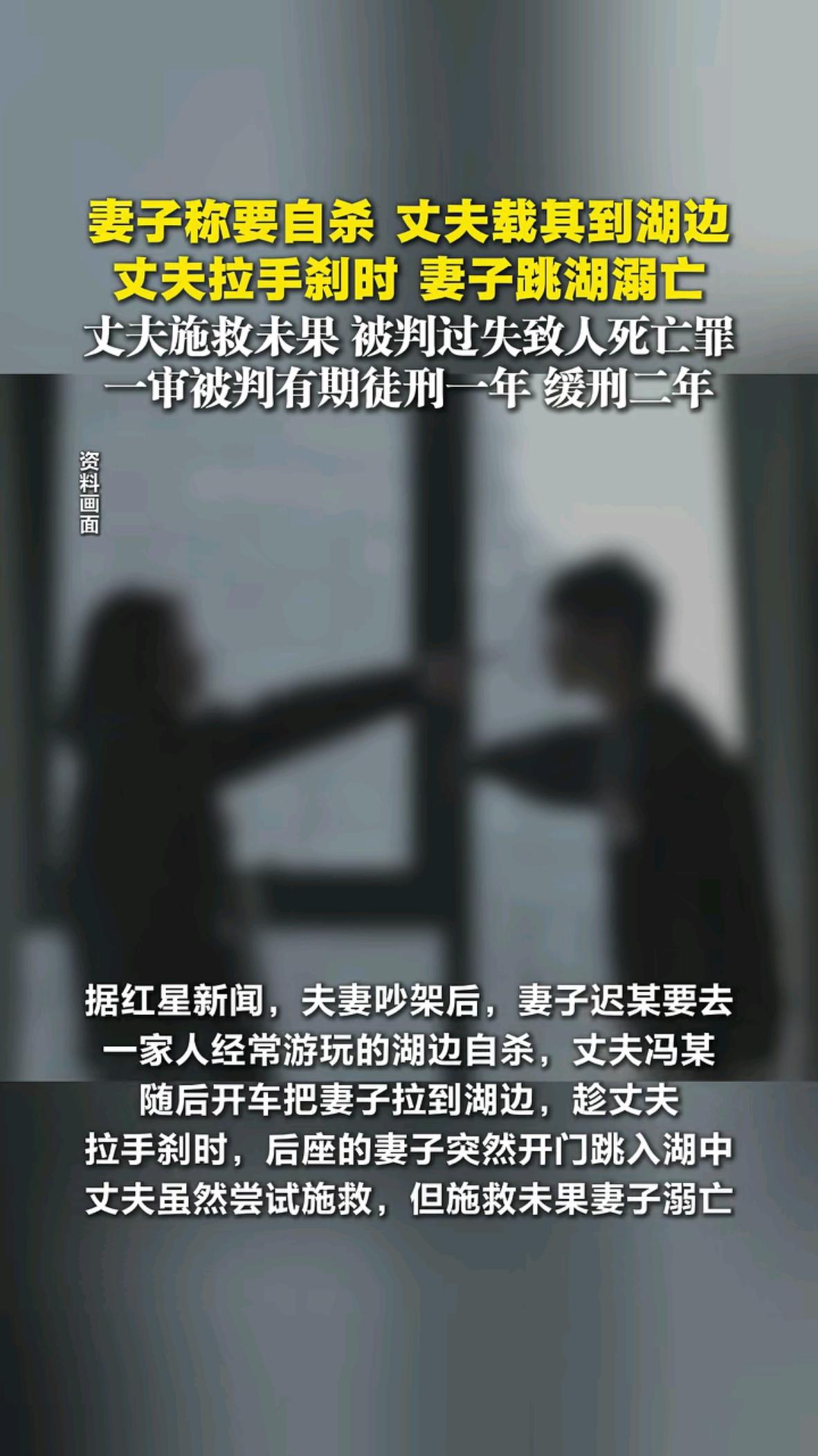 他载着寻死的妻子赴约湖边,一个刹车间隔,便是阴阳永隔。 夫妻拌嘴本是家常便饭 谁料闹到以死相逼的地步 丈夫的操作堪称迷惑行为大赏 你说不想她死 就该死死把人拦住 偏要顺着她的意 把车开到湖边 这哪是劝和 分明是递刀 手刹还没捂热 后座的人已经扎进湖里 想救都来不及 法院判过失致人死亡 一点不冤 这不是背黑锅 是自己踩的坑 感情里最忌较真抬杠 更怕顺着极端情绪推波助澜 你以为是妥协 其实是放纵 你以为是迁就 实则是放任风险 命是自己的 也是身边人的 一时冲动的狠话 别当真 顺着歪路的纵容 害死人 婚姻不是赌局 不必以命相搏 沟通不是抬杠 不必非要赢 如果连生死都能拿来试探 这样的感情 到底值不值 都说百年修得同船渡 夫妻一场 该是彼此的退路 而不是把对方推向绝路 你觉得 这判决是轻是重