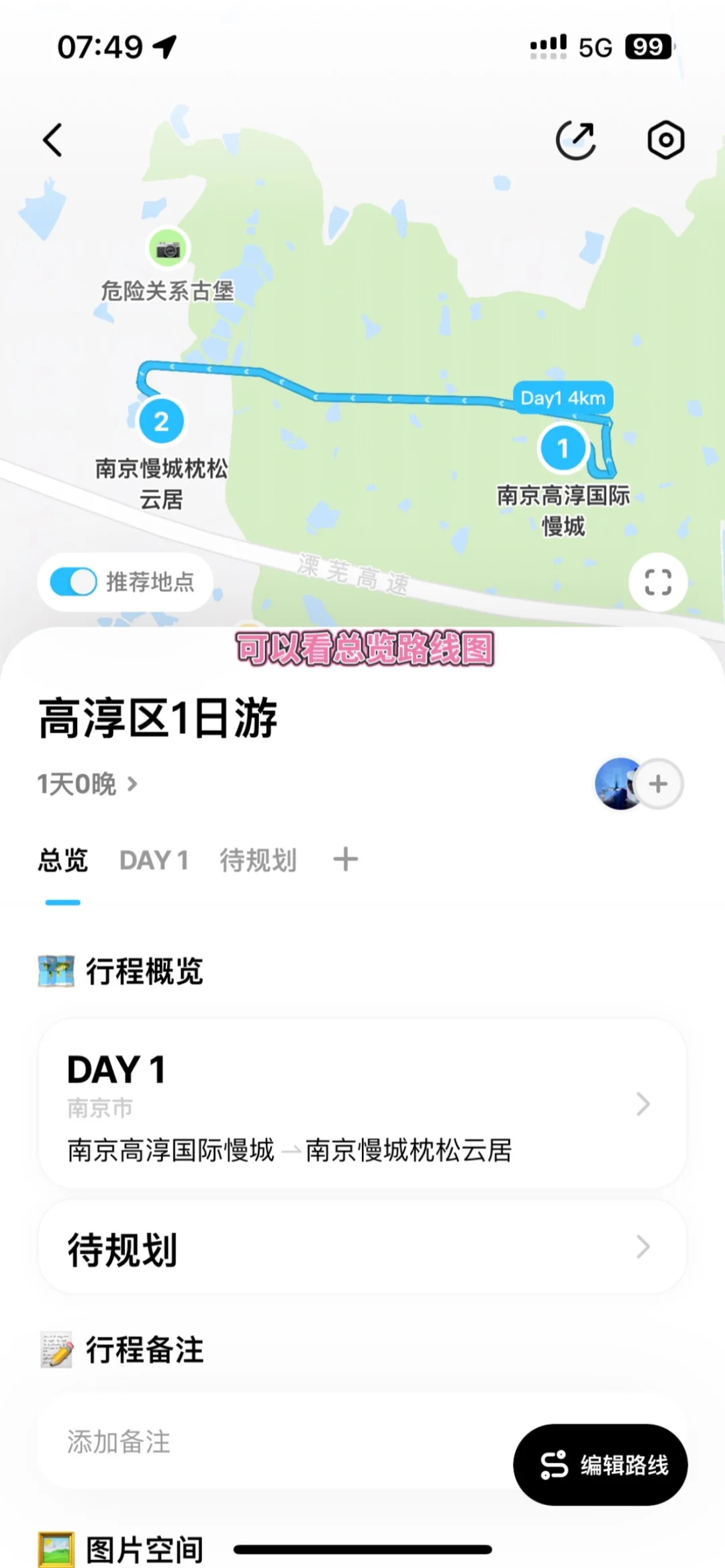 🤳🏻来高淳玩,我和好朋友一起用来做攻略,查看地图很方便,一键解析行程,各景点间距离也一目了然,用起来很方便!