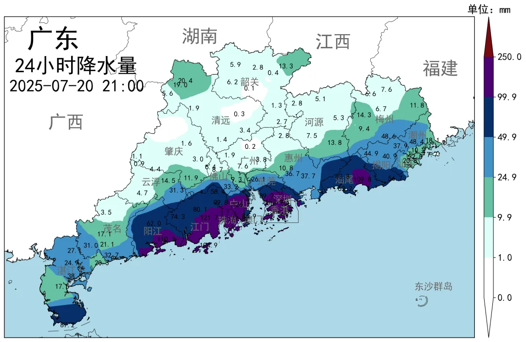由于此轮台风降雨猛烈,并且降雨还将持续,断断续续持续到周三,累积降雨量巨大,无论是潮汕沿海,还是珠三角沿海~粤西沿海,都要做好防范大水涝的准备。