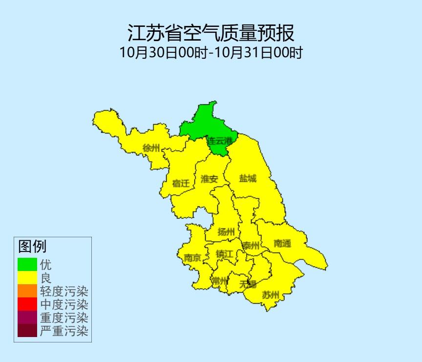 明天全省空气质量以优良为主。11月1日前后还有1次较强冷空气影响江苏过程,31日