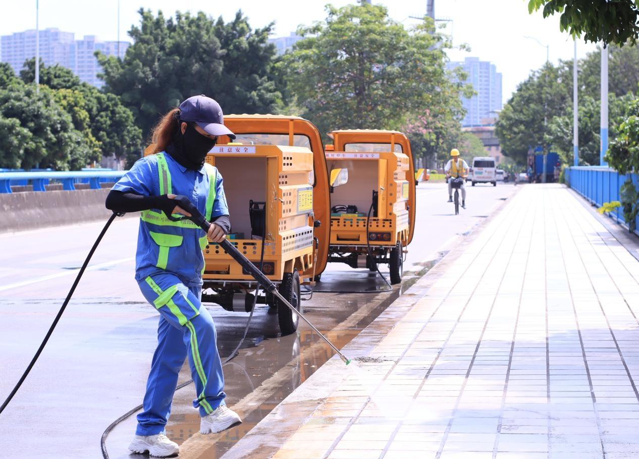 近日,花都区新投入的纯电动洗扫车上线啦!新设备低噪音、零排放,让道路保洁更加高效。专用吹风机配合清扫车,落叶清理效率提升了30%。其他新设备也陆续亮相,新能源快速保洁车穿梭小巷,路面垃圾滞留时间缩短了40%。果皮箱清洗车高压冲洗,效率提升了35%。