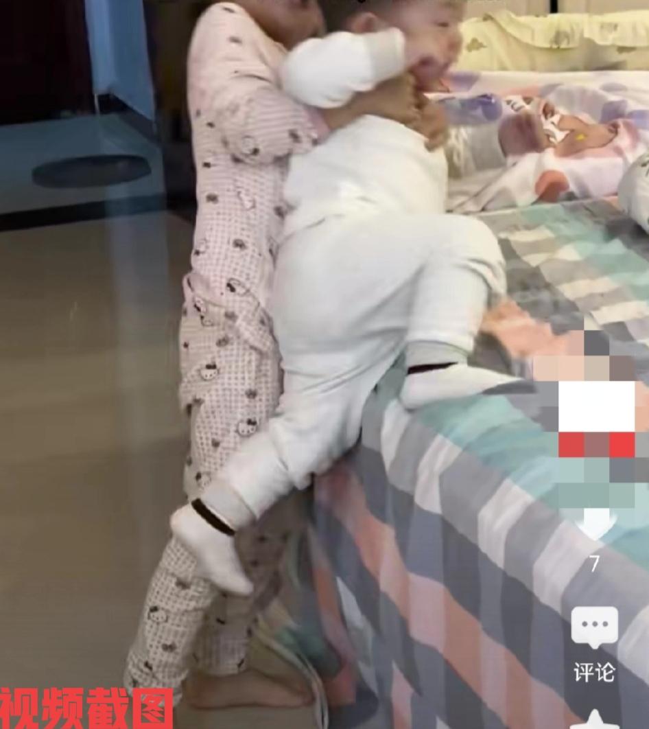 宝妈想知道女儿姐姐如何把儿子弟弟抱上床的。 毕竟姐姐也是年幼,弟弟也是如此,两个幼小的孩子如何配合上床睡觉呢。 宝妈留心观察,原来姐姐把弟弟抱来,让弟弟的身体一半在床边上,自己在后面慢慢把弟弟往床上推,弟弟上床了,自己然后再爬上床帮弟弟脱袜子,安排弟弟睡觉,小小年纪照顾弟弟是行云流水,没有任何的拖沓,宝妈这次总算知道弟弟是怎么上床呢。 宝妈有感女子本弱,搬弟则刚。 这里也是做姐姐照顾弟弟的天性,在她的稚嫩心灵里,有着天生的办法能把弟弟送上床,虽然姐姐的气力也不足,但她会用巧力安全把弟弟推到床上,仿佛这是她的责任一样,她有这个能力照顾弟弟,也有这个本事让自己弟弟到床上睡觉,这就是姐弟情深的心意吧。 年幼的姐姐背年幼弟弟上床,看到姐姐心里对弟弟的爱护,这是血脉情感的浓郁,也是做姐姐天生护佑弟弟的本性。