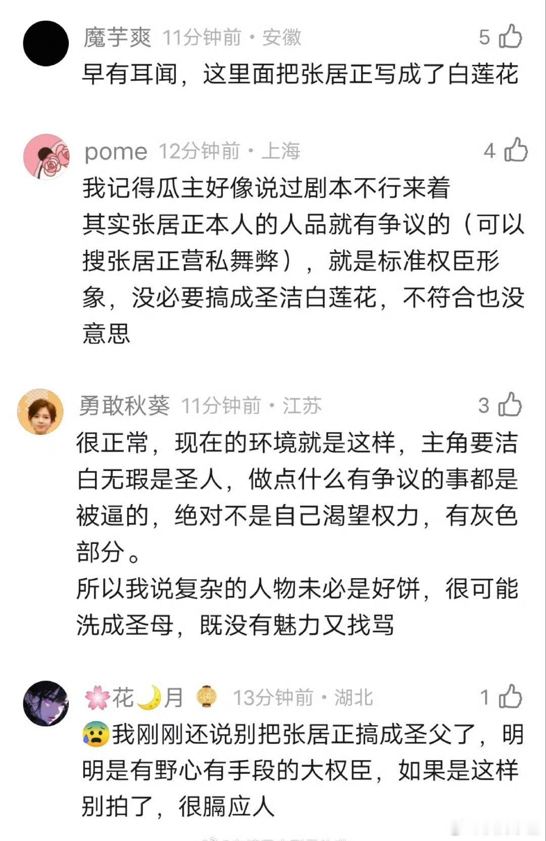 主要我觉得封建时代大臣就不咋好拍,曹操那种纯权臣半皇帝感觉都更好拍,张居正这种一半权臣做派一半忠臣牌坊的不好拍