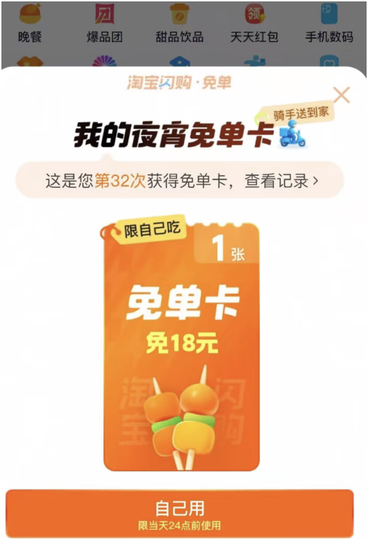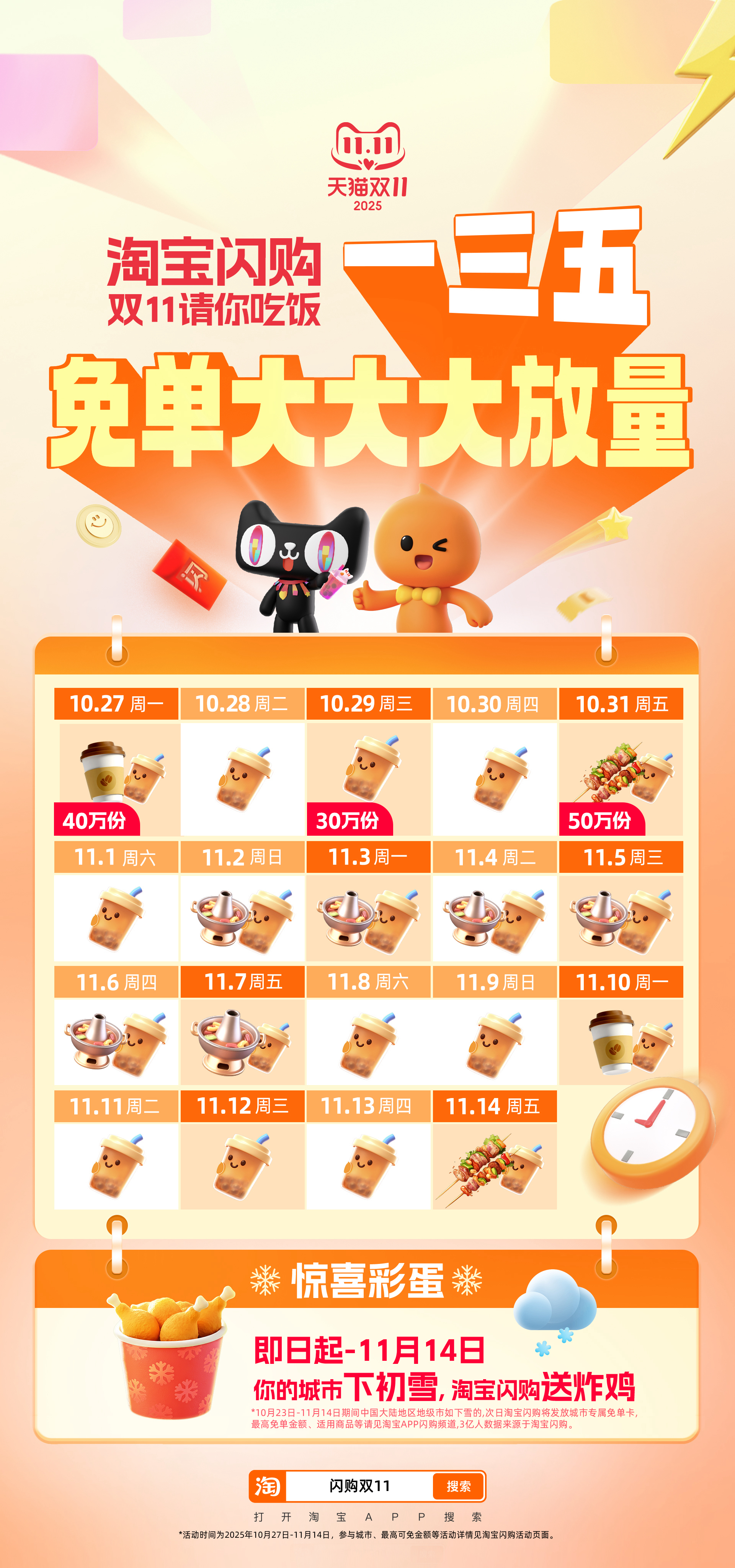 不好意思,这下很难对自己差了~淘宝闪购免单一三五大放量 这个双11淘宝闪购请你吃饭
