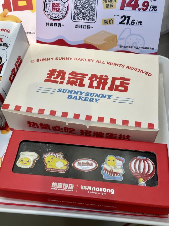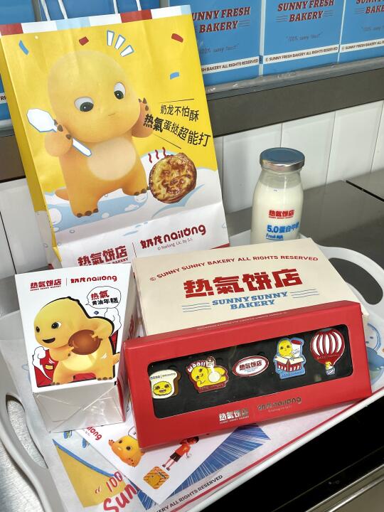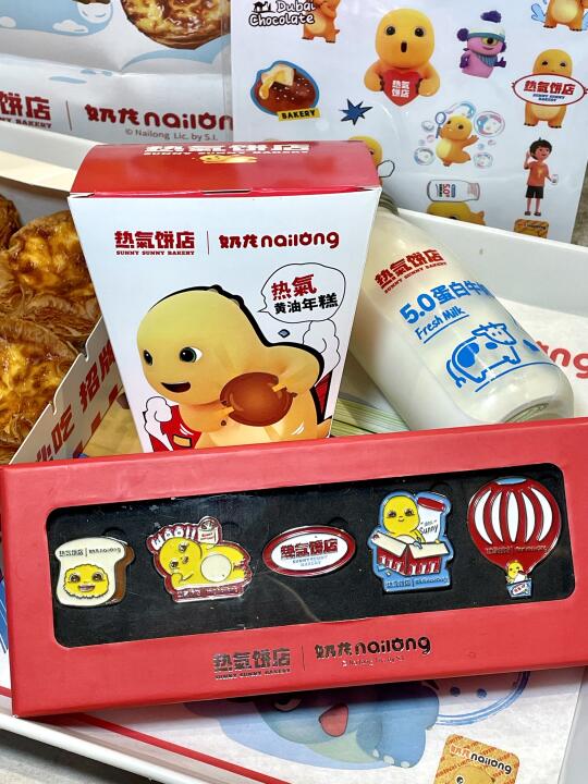热氣饼店首次联名,竟然是黄色男明星奶龙!! 我的钱包实在不能忍惹!! 全套奶龙周边我都想拥有!! 还好一看标价是个位数,妥了! 外面脆脆的,内里糯叽叽的热氣黄油年糕 谁吃谁爱!奶萌奶萌🥰和奶龙配一脸!