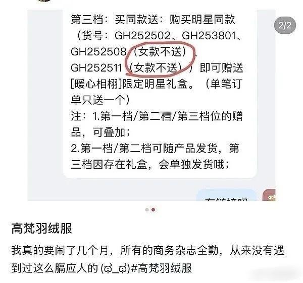1.同款羽绒服溢价,而且装都不装了,卖给路人的和卖给粉丝的🔗同时放在店里,粉丝的🔗要多300元;