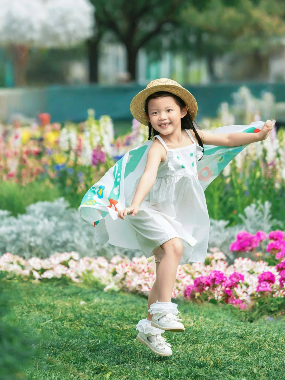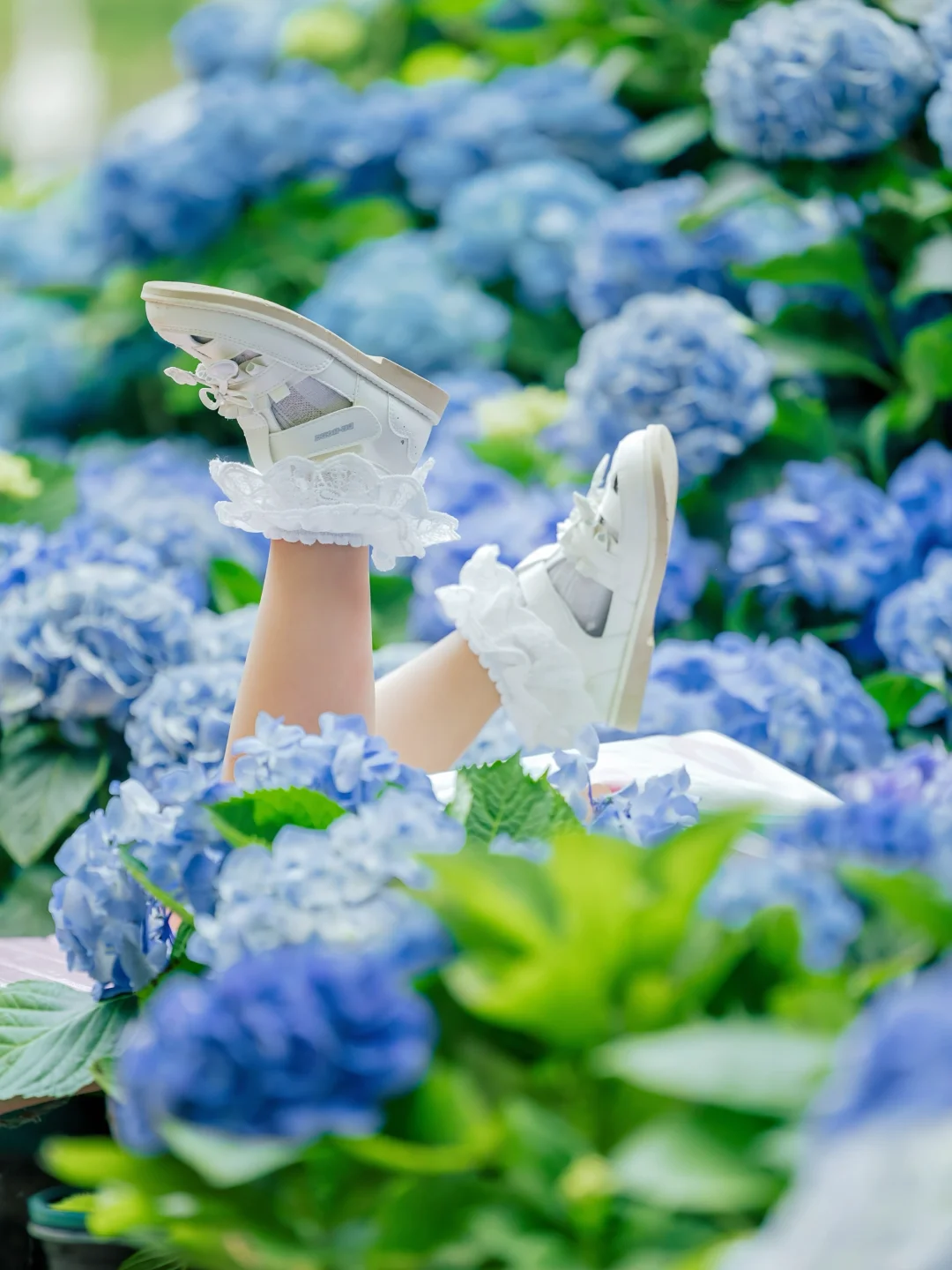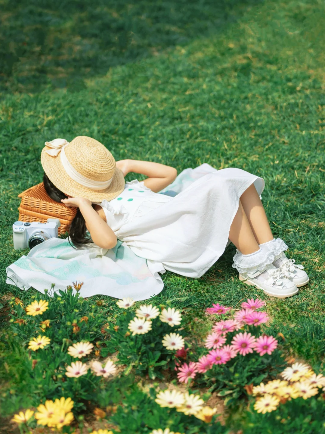 公园里的花都比较鲜艳,穿浅色的裙子会更出片。有好看的裙子当然也要配上一双既漂亮又舒适的鞋子。