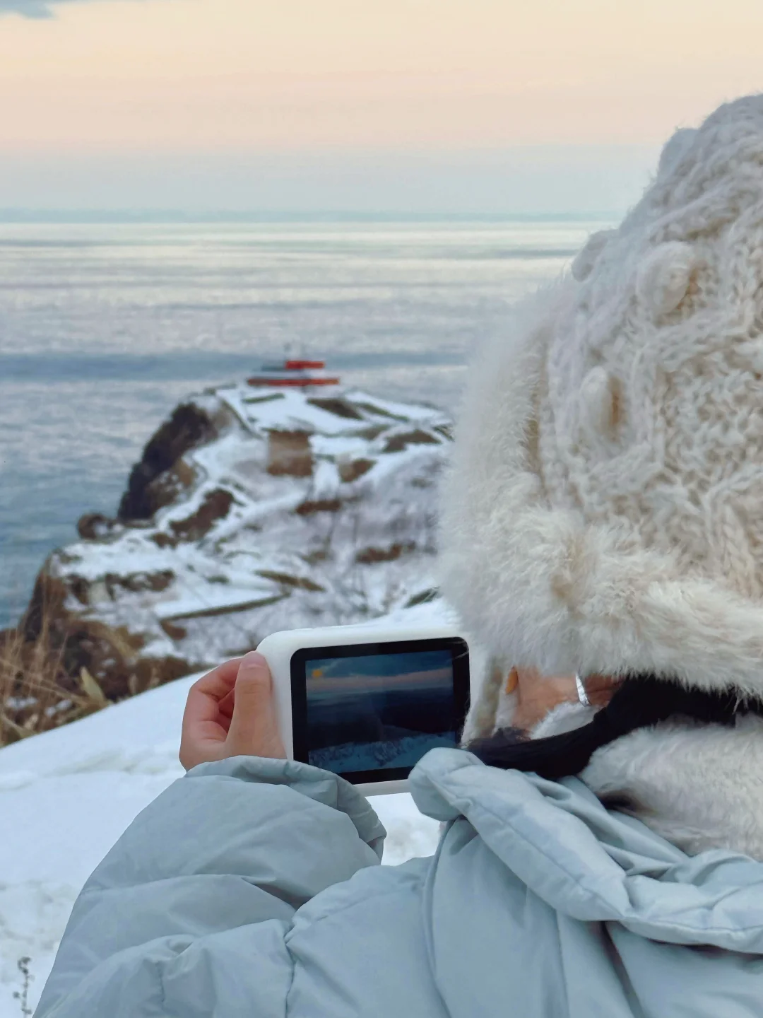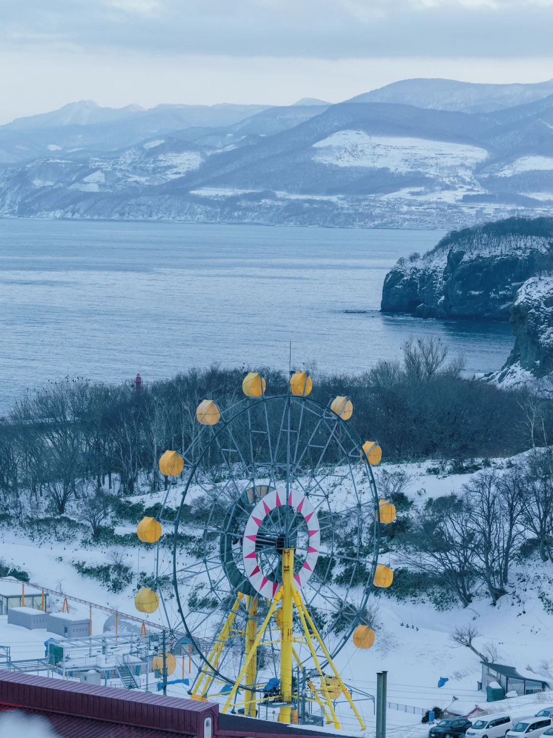 16:05 打车上展望台这里很关键,如果不打车的话是赶不上后面的行程的。去展望台要走一个大上坡,有雪也比较滑。路程不远,但慢慢走的话起码要二十分钟。而且小樽的商业街基本六点就都关门了。所以我们打车上了展望台,让司机等了我们大概十分钟,再直接开去八音盒博物馆。包括等待时间的总费用是3700日元。