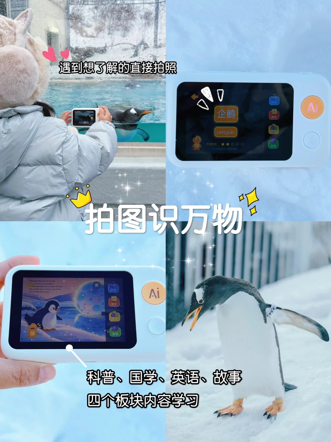 这次来日本旅游,我给芙芙带上了噜咔博士AI拍学机。它的外型就像一台小相机,但是摁下快门后就可以自动通过AI智能识别万物。芙芙在旅行时遇到好奇的东西时,就会拿出它拍摄。当拍学机识别出物品后,还会有中文介绍、汉字笔画、英文翻译以及围绕这个物品的知识讲解。有它的陪伴,芙芙这一趟旅程可以说非常充实,一路玩耍一路学习。