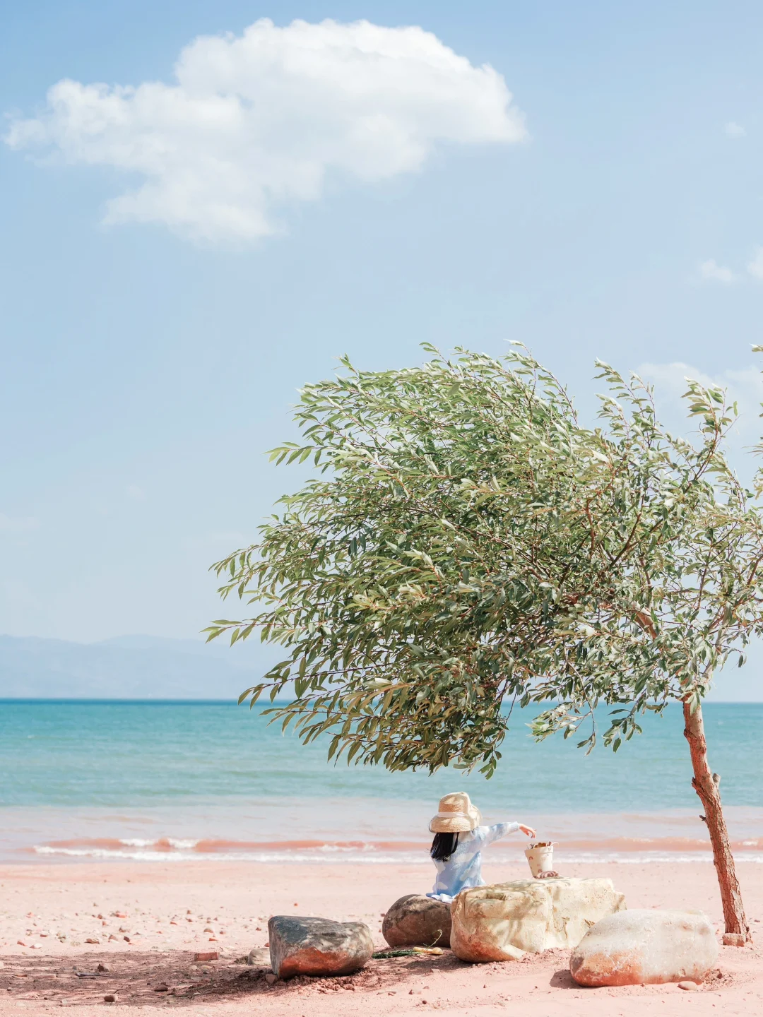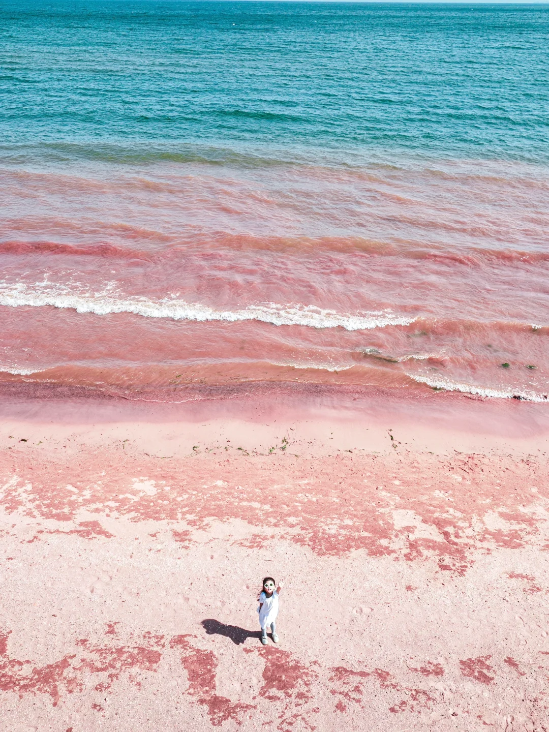 🌟红沙滩:阳光下沙子是肉粉色的沙滩上还有白色的小贝壳。