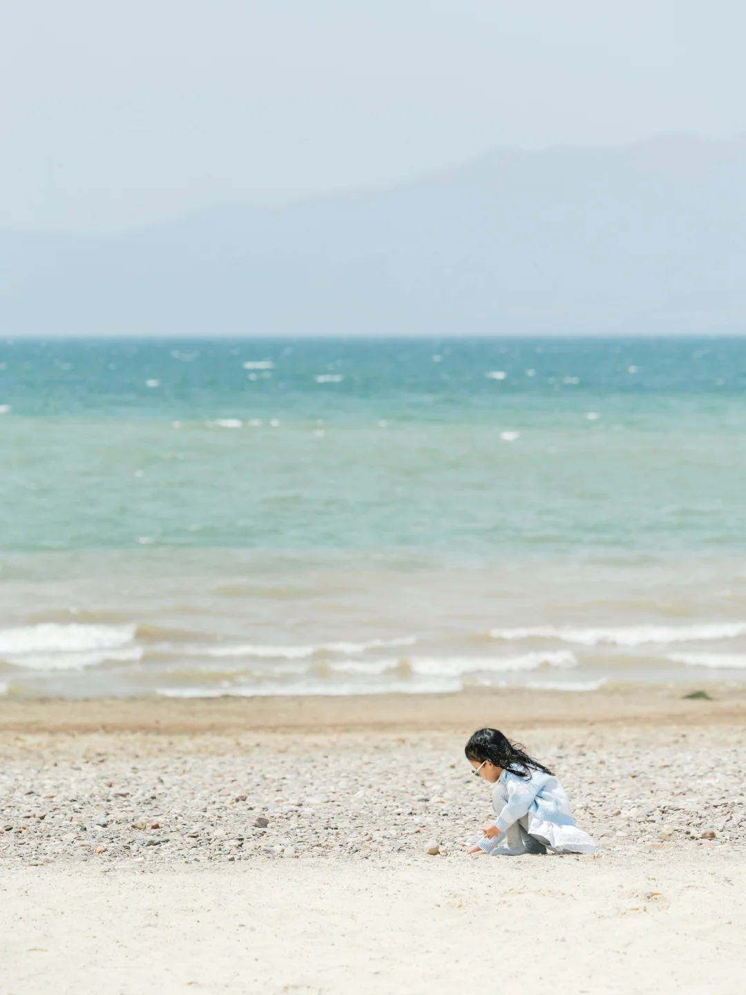 🌟月亮湾湿地公园沙子比较细,还有儿童游乐设施。阳光下可以看到玻璃水面,而且颜色非常有层次。