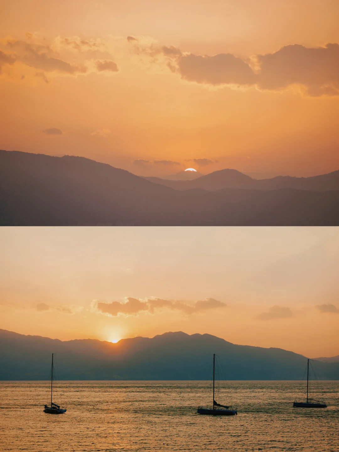 🌟大湾村日落导航澄华线与035乡道交叉口,这里地势高可以俯瞰抚仙湖,且能停车。