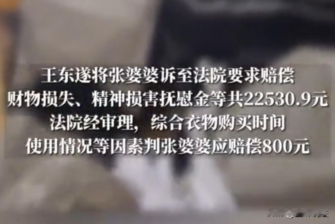 四川成都,男子把1万左右的衣物装在袋子放在门口,邻居88岁的老奶奶以为是不要的废品,于是捡走以9元的价格卖了,后来衣服找回来了,可均有不同程度的受损,男子要求赔偿8000元,但老奶奶家属只愿意赔偿5500元,男子不服起诉索赔22530.9元,结果赔偿金额让男子后悔。 快递小哥到了王东(化名)门口,发现并没有他所说的袋子,于是打电话联系了他。 王东一听说门口没有袋子,他赶紧跑回家。 到门口后,发现他放在门口的袋子确实不见了,他急得团团转,那里面可是放了价值1万多的衣服呢! 他当时想会不会是家人拿回家了呢,于是赶紧联系了家里人,可他们都说没有拿。 家人没有拿,那袋子到底哪里去了? 王东太着急了,以至于没有想到门口安装了监控,有人随口提了一句他才想起,于是赶紧查看俩人监控。 这一查看才知道是被人拿走的,是邻居家80多岁的老奶奶拿的。 他找到老奶奶家,要求她把衣物还给自己。可老奶奶说她以为是不要的废品,她已经卖掉了。 王东听到老奶奶把他价值1万左右的衣物当做废品卖了9元,他简直气坏了。 但既然是老奶奶拿走的,那她就要赔偿自己。 王东说自己衣物价值1万左右,但看在是老人上了年纪、而且是邻居的份上,要她少赔偿一点,自己只要8千的赔偿。 老奶奶家属一听,觉得王东是在狮子大开口,他们觉得这么贵重的东西王东怎么可能直接放在门口,说王东是在讹他们。 王东觉得他提出的赔偿已经是看在大家是邻居的份上了,结果他们不但不领情,还质疑他。他是越想越气,觉得既然他们不相信自己,那就找警察来,于是选择了报警。 王东报警后,老奶奶和她家属相信了衣物的价值,于是赶紧寻找,希望能把衣物找回来,要不然就挨赔钱了。 经过老奶奶和她媳妇的努力,后来在回收站找回了5件衣物。 可衣物是找到了,可每件均有不同程度的损伤,对于王东来说,已经无法使用了,他提出要求老奶奶赔偿8千元。 可老奶奶和其家属认为王东提出的赔偿有点高,而且他们认为衣物已经旧了,应该有一定的贬值,表示愿意赔偿5500元。 可王东觉得这赔偿和自己所要求的相差有点大,而且他觉得衣物虽旧,可他还是可以使用的,但因为老奶奶的原因,他要重新购置,那可不是5500元可以买回来的。 双方为此争执不休,公说公有理,婆说婆有理,王东懒得再与他们争论,一气之下直接把老奶奶告上法庭,要求其赔偿财物损失、精神损害抚慰金等共22530.9元。 老奶奶在没有询问王东以及家属的情况下,认为王东放在门口的衣物是废品,造成衣物损失,老奶奶是有过错的。 《民法典》第1165条规定:行为人因过错侵害他人民事权益造成损害的,应当承担侵权责任。 既然老奶奶给王东造成损失,王东索要赔偿合情合理。 可王东却提出财物损失、精神损害抚慰金等共22530.9元,他的要求是否合理呢? 《民法典》第1184条规定:侵害他人财产的,财产损失按照损失发生时的市场价格或者其他合理方式计算。 王东索要赔偿没有错,但他的要求需要合情合理,不是他说要多少赔偿就要求多少的,是要按照其财产的实际损失。 最终法院经过审理认为,老奶奶侵害了王东的权益,给他造成损失是事实,王东索要赔偿合情合理,但王东的衣物并不是新的,综合衣物购买时间、使用情况等因素判老奶奶应赔偿800元。 相信王东应该很后悔,当他提出8000元赔偿的时候,老奶奶家属愿意赔偿5500元,结果他不愿意,最后却只得到800元的赔偿。 对于此事,您有什么看法?