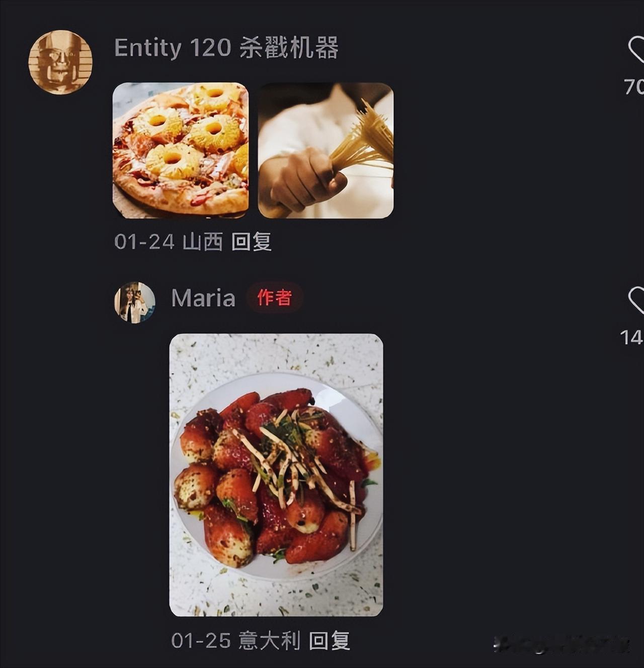 意大利网友和中国网友在小红书干起来了。[捂脸] 内容过于“凶残”,当两地文化交汇的时候,众口难调,看似冲突的饮食互动,实则是文明系统通过味觉进行的非暴力升级,也感到了一丝丝资本主义渗透。 例如:辣味牛肉可颂、浓缩咖啡馅麻糬、黑松露芝士馅包子等等等等