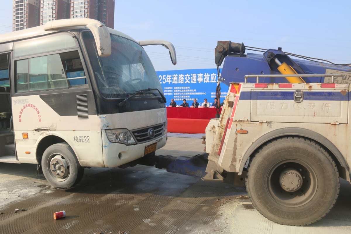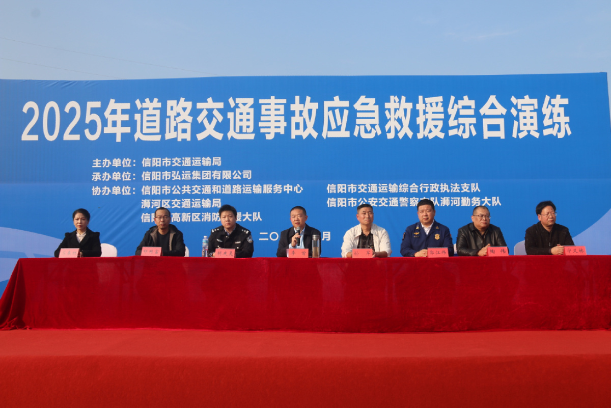 为深入贯彻关于安全生产、应急救援、防灾减灾救灾的重要指示批示精神,牢固树立“人民至上、生命至上”理念,切实增强风险意识、强化底线思维,全面提升道路运输行业突发事件应急响应与协同处置能力,有效保障人民群众生命财产安全,10月27日,由信阳市交通运输局主办的“2025年信阳市道路交通事故应急救援综合演练”在信阳市高新区工六路弘运天基修理厂成功举行。