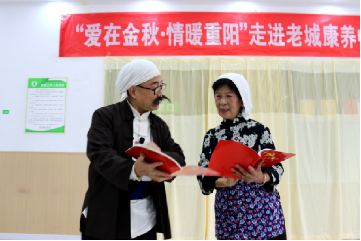 文艺演出环节精彩纷呈、京韵飘香。《香山巍巍飘彩云》余音绕梁,《浑身是胆雄赳赳》豪情满怀,《老俩口学习总书记讲话》生动诙谐,每一个节目都引得台下掌声如潮。与此同时,老城卫生服务中心组织的“健康加油站”同步开展服务,志愿者为老人们测量血压、提供按摩放松,将健康关怀切实送到长者身边。