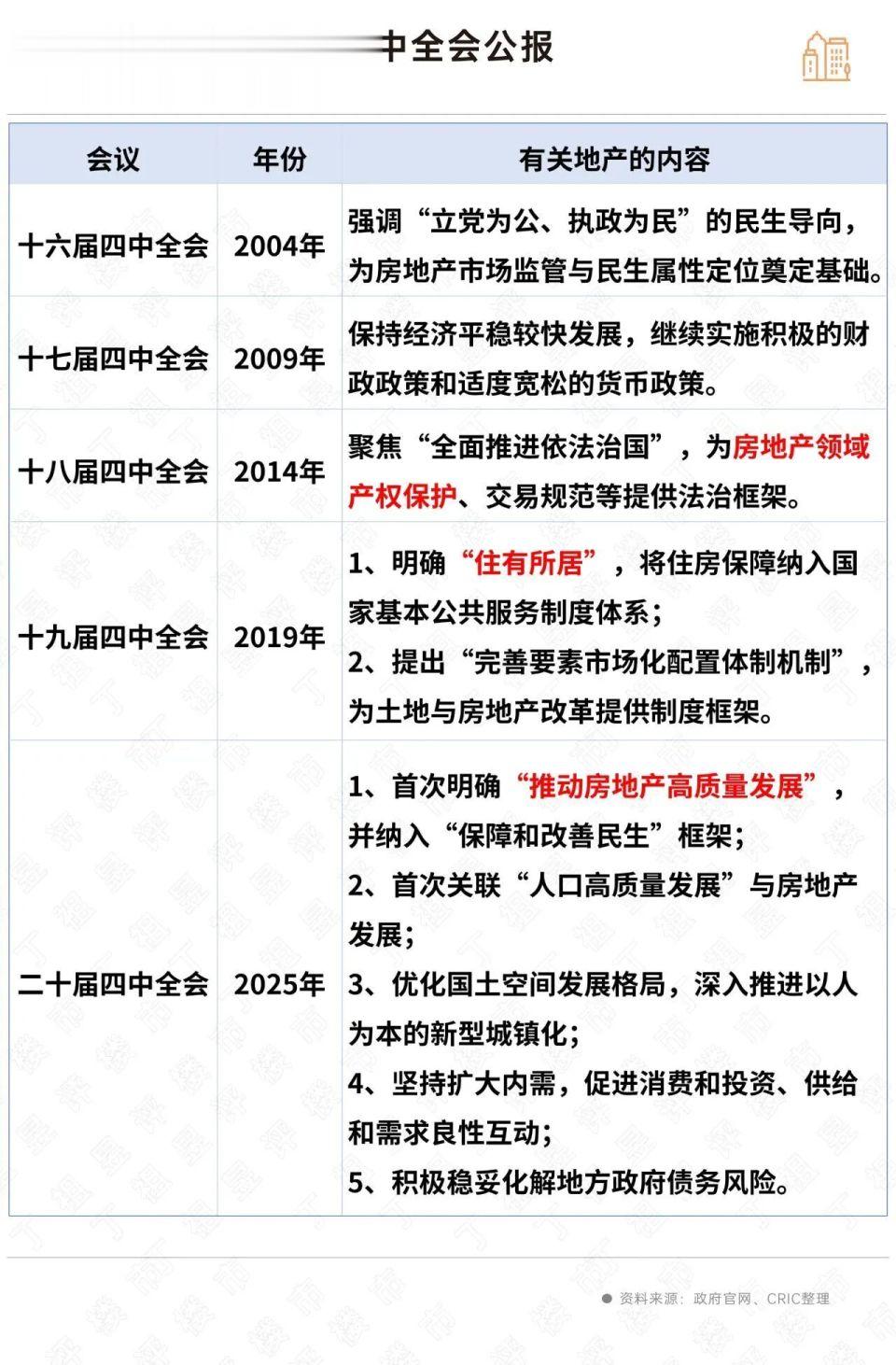 从十九届四中全会“住有所居”到二十届四中全会“房地产高质量发展”,政策始终锚定“民生保障”核心,未来市场将进一步强化“民生为本、市场为辅”的平衡。