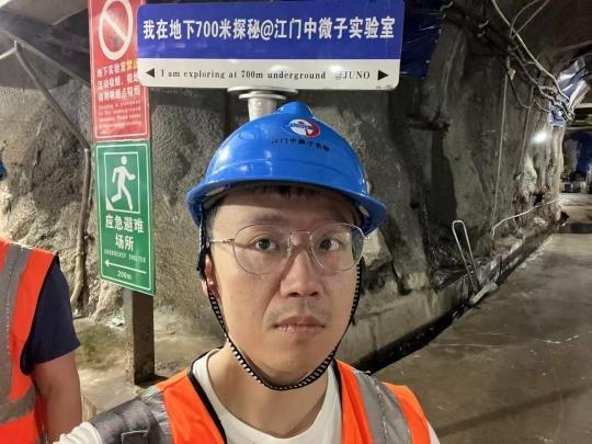 江门中微子大科学装置在700米的地下,从地面到装置,由一口斜井和一口竖井相连,其中斜井铺有轨道,两端平时由小火车负责运输人和物品。记者经斜井乘坐小火车,整整经过13分钟,才从地面抵达江门中微子实验大科学装置。