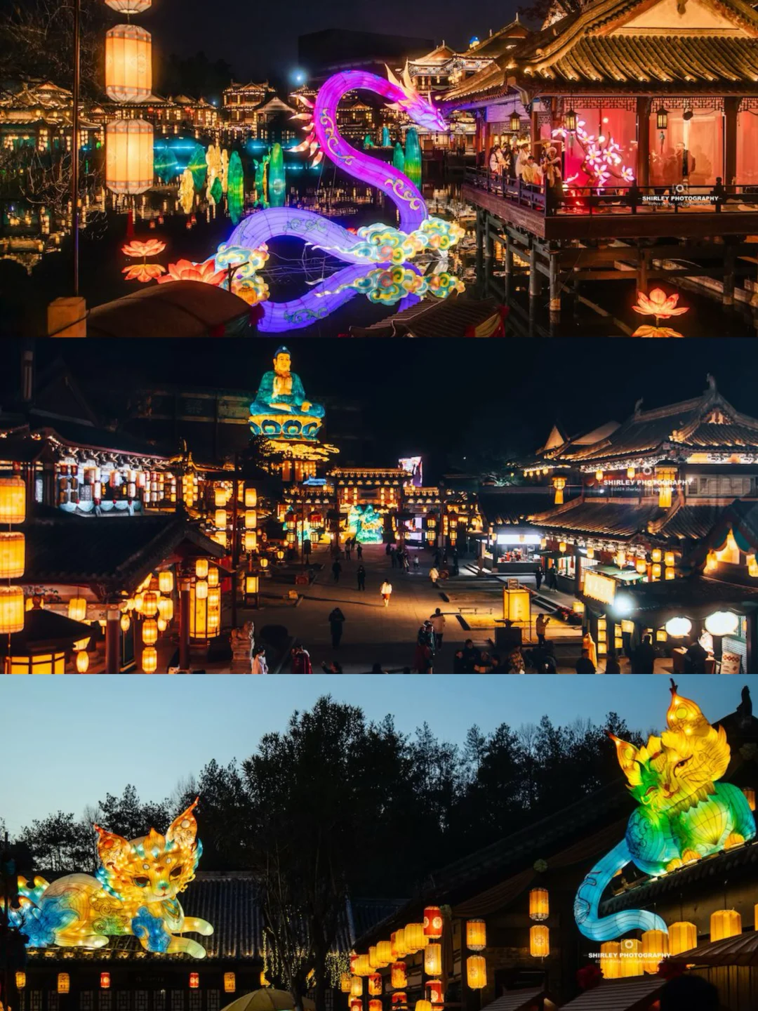 ▫️水戏台附近的《灵蛇渡缘》 蛇仙灯组,站在水门前的桥上拍最惊艳